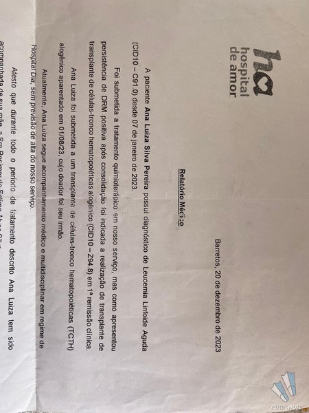 Devido as condições da família, a médica conseguiu que os exames fossem feitos no Hospital Regional. Segundo a dra. Monique, assim que o resultado confirmou que a garota estava com Leucemia, informou para Rosi e já cadastrou Ana no SUS Fácil, porém o laudo foi negado. O estado de saúde da adolescente só piorava. Foi então que a médica ligou para o Hospital do Amor, em Barrretos-SP, e conseguiu uma vaga.