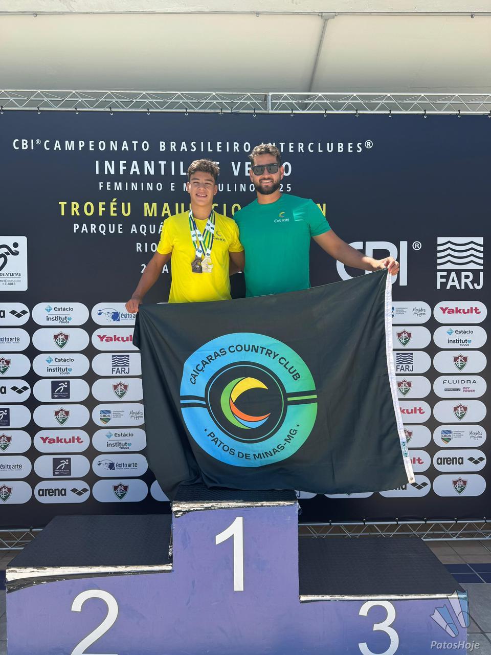 Patos de Minas é um celeiro de grandes atletas que se destacam em diversas esportes. Um deles é o Cauã Lagares e Queiroz, de 14 anos, que conquistou medalha de ouro nos 200m medley e medalha de bronze nos 200m peito, durante o Campeonato Brasileiro Interclubes Infantil de Natação de Verão, disputado na última semana no Rio de Janeiro. O atleta patense já soma mais de 100 medalhas ao longo da carreira.