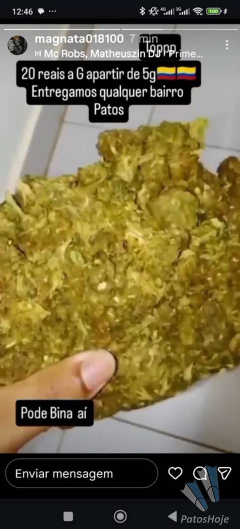 Na quinta-feira (02), por volta das 19h25, na Avenida Presidente Tancredo de Almeida Neves, Residencial Laguna, Bairro Ipanema, em Patos de Minas, policiais militares do 15º BPM realizaram operação com base em levantamentos prévios do serviço de inteligência. Um jovem foi preso após ser apontado como vendedor de drogas pelo Instagram. As postagens no perfil mostravam a oferta das drogas.
