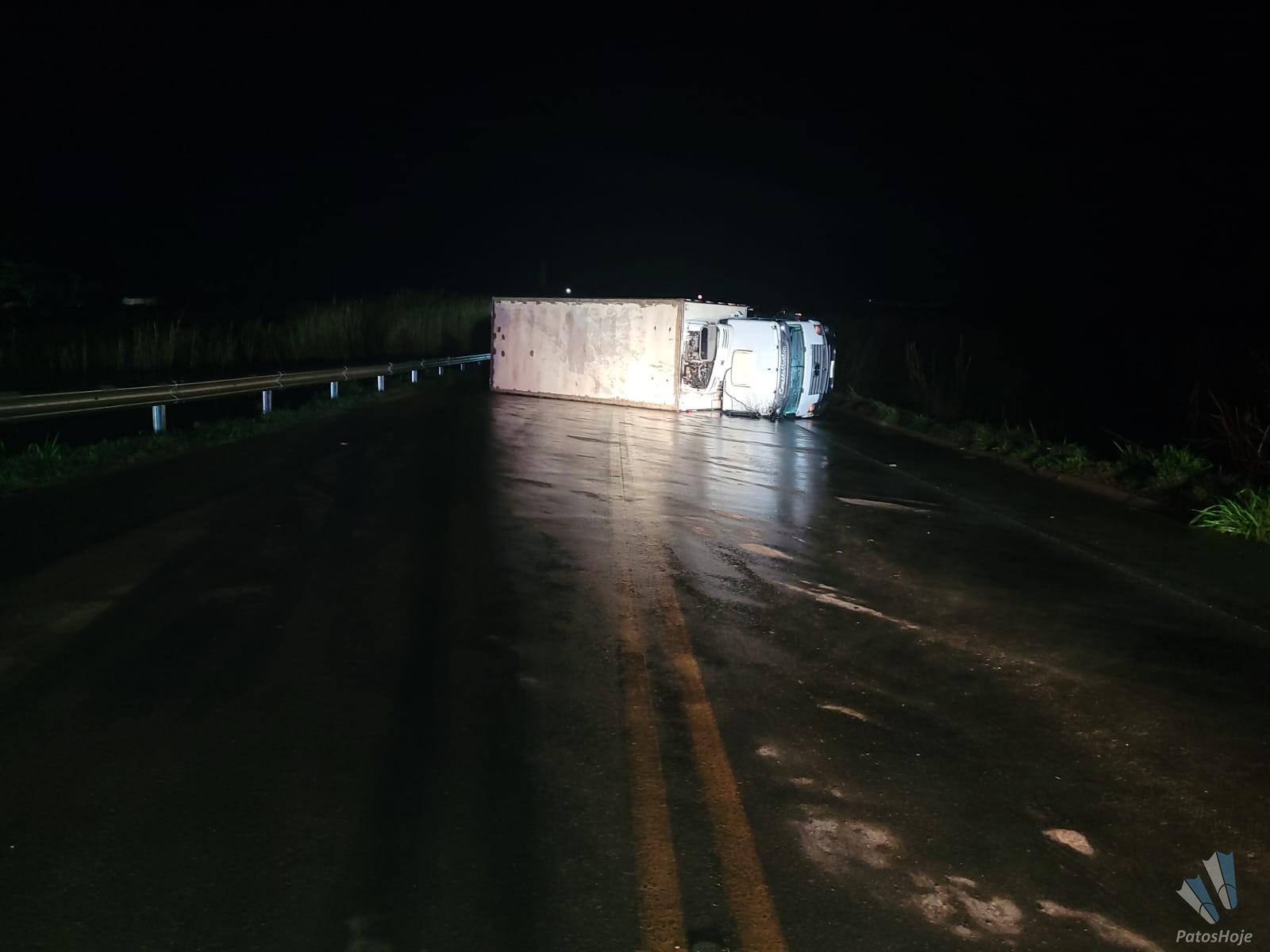 Um caminhão tombou na madrugada desta segunda-feira (13) na BR-354, entre São Gotardo e Rio Paranaíba, e deixou a pista totalmente interditada. O acidente aconteceu por volta de 1h40, no km 329 da rodovia, entre o trevo de São Gotardo e o trevo de acesso ao distrito de Guarda dos Ferreiros.