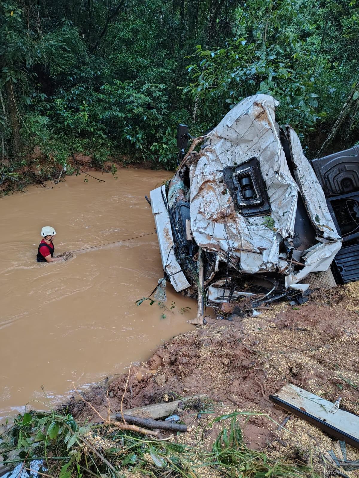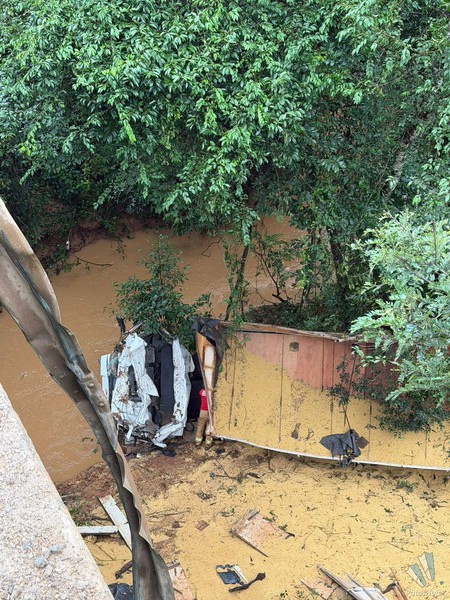 As águas estão acima do nível normal em virtude das chuvas com presença de forte correnteza. Bem distante do local foram localizadas partes da carreta e também algumas peças de roupa que foram reconhecidas pelos familiares.