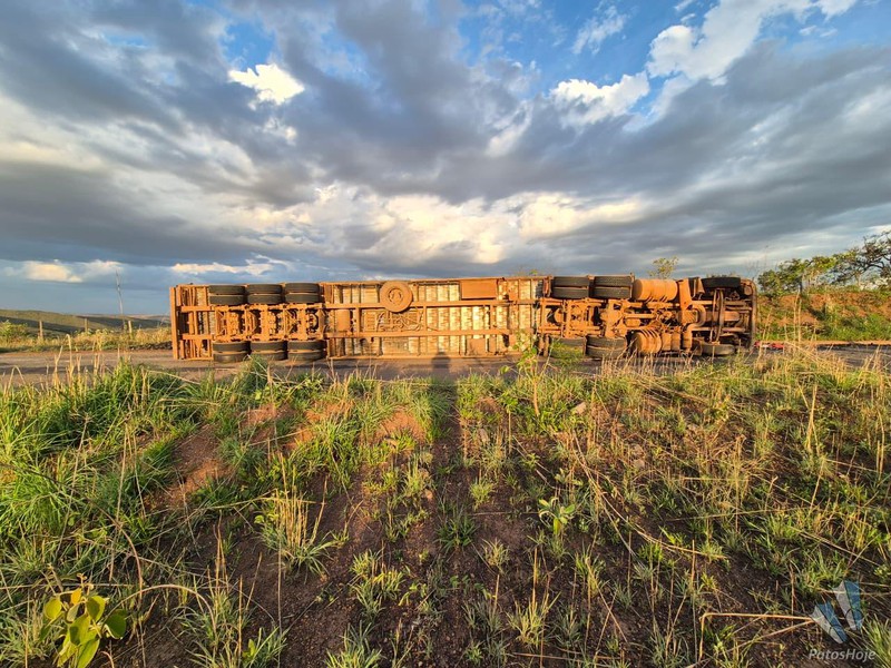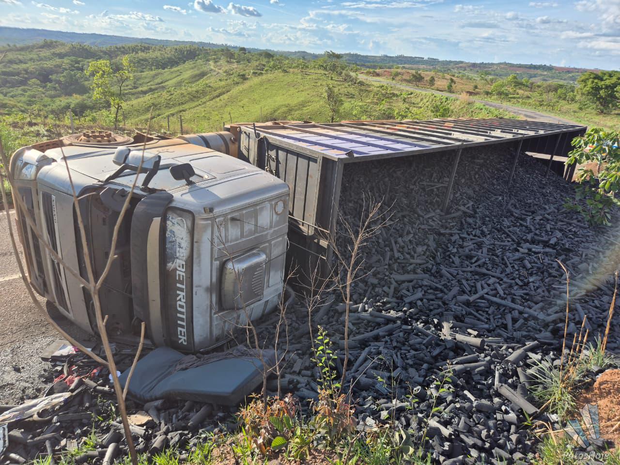 O acidente aconteceu na tarde dessa sexta-feira (07) no km 351 da MG 188, em Coromandel. A carreta carregada de carvão vegetal tombou após o motorista perder o controle em uma curva. A carga ficou espalhada às magens da rodovia.