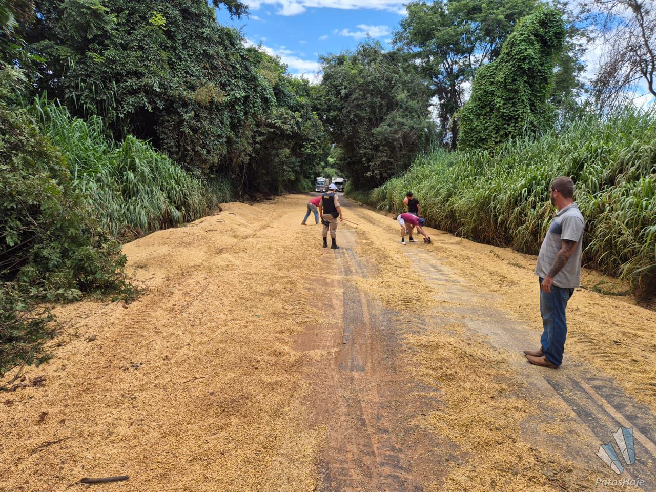Com o tombamento, o último semirreboque e o penúltimo reboque da combinação veicular tombaram na pista de rolamento, parte da carga de 49 toneladas de soja a granel ficou espalhada pela rodovia, prejudicando o tráfego.