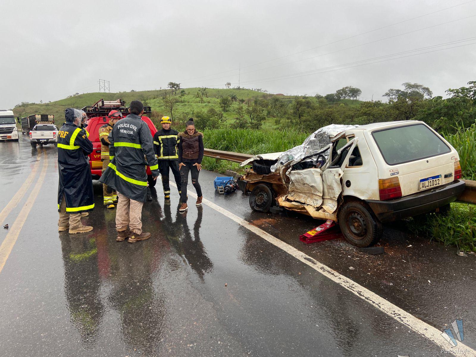 A equipe do Patos Hoje compareceu em mais esse trágico acidente. O caminhão seguia em sentido a Patos de Minas quando teria batido frontalmente contra o Fiat/Uno que seguia em sentido contrário. A Polícia Rodoviária Federal esteve no local para registrar mais essa tragédia. Ainda não se sabe quem teria invadido a contramão de direção.