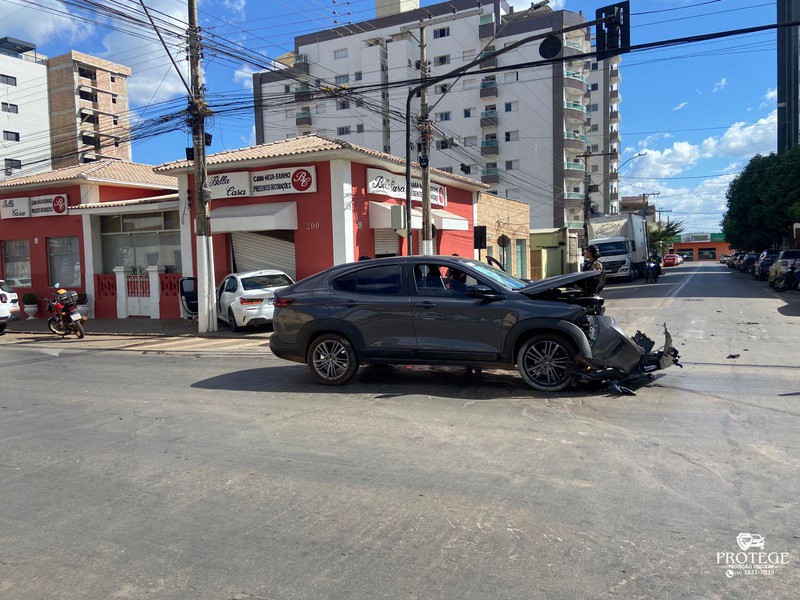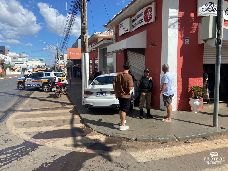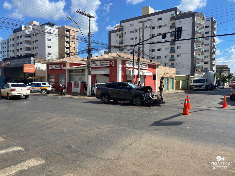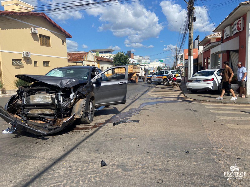 Uma criança sofreu ferimentos após um acidente no cruzamento da rua Doutor Marcolino com a rua Farnese Maciel, no Centro de Patos de Minas, na tarde deste sábado (25). A batida envolveu um FastBack e uma BMW, que acabou invadindo uma loja. A Polícia Militar controlou o trânsito, que ficou em meia pista, até a retirada dos veículos.