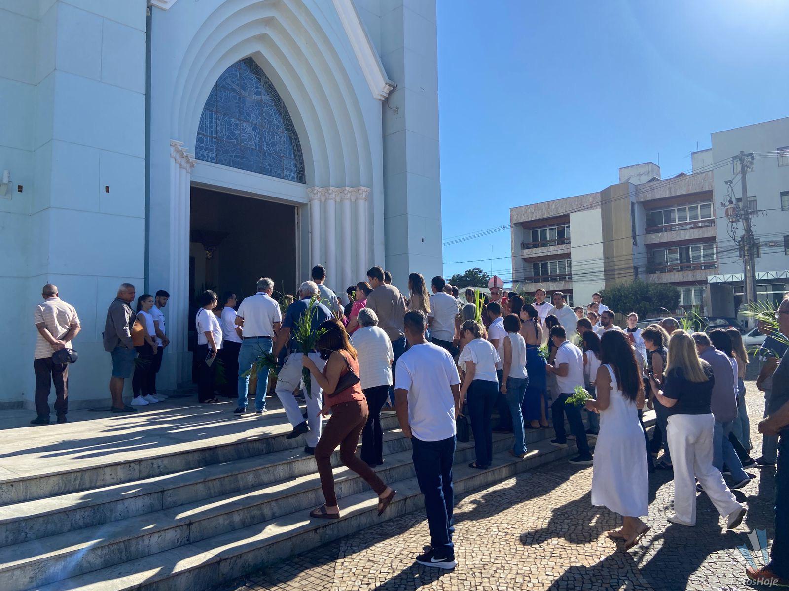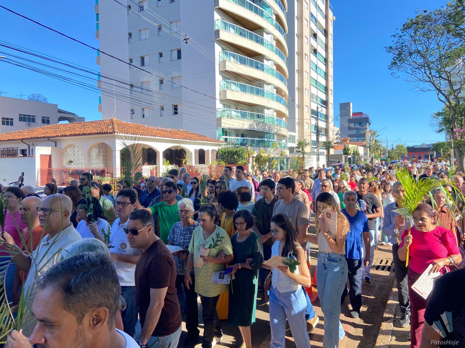 A programação foi marcada por uma procissão que saiu do Largo da Matriz, também conhecido como Largo do Cruzeiro, e seguiu até a entrada da igreja. Durante o trajeto, os fiéis carregavam ramos de diferentes tamanhos e formatos, relembrando a entrada de Jesus Cristo em Jerusalém. Os ramos foram abençoados.