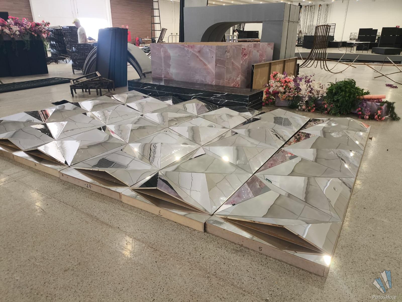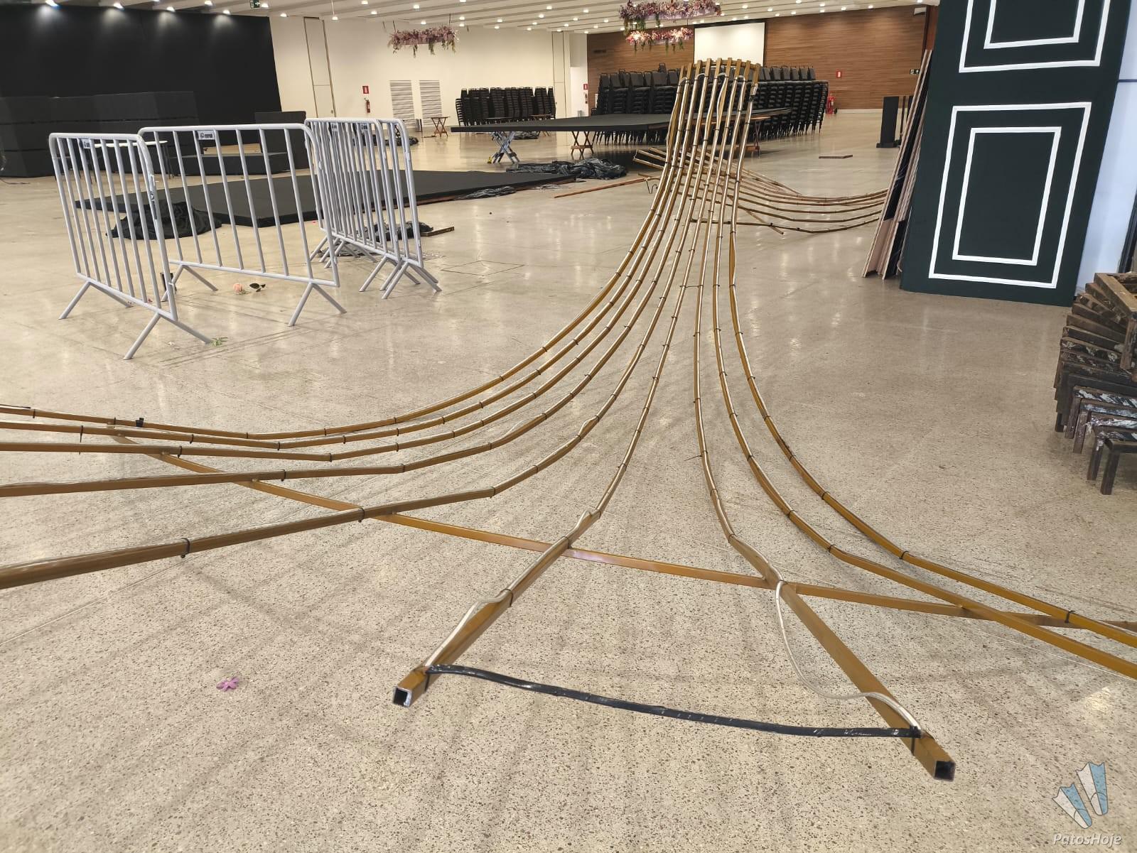 Neste sábado (27), além das bebidas, o salão já conta com as milhares de cadeiras para o evento. Aparadores para o buffet, lustres gigantes e um caminhão de flores também já chegaram ao salão. As paredes gigantes estão sendo cobertas para transformar o ambiente. O decorador Wellignton Caixeta, reconhecido por seus grandes trabalhos em toda a região, promete uma das maiores decorações já realizadas. Diversos enfeites inéditos deixarão a virada de ano realmente fascinante.