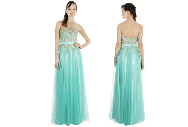Tule bordado com pedraria e saia em tecido leve. O decote tomara que caia valoriza o busto e deixa a mulher ainda mais poderosa. Perfeito para mulheres com pouco busto. Para modelar a silhueta foi aplicada uma faixa na cintura.