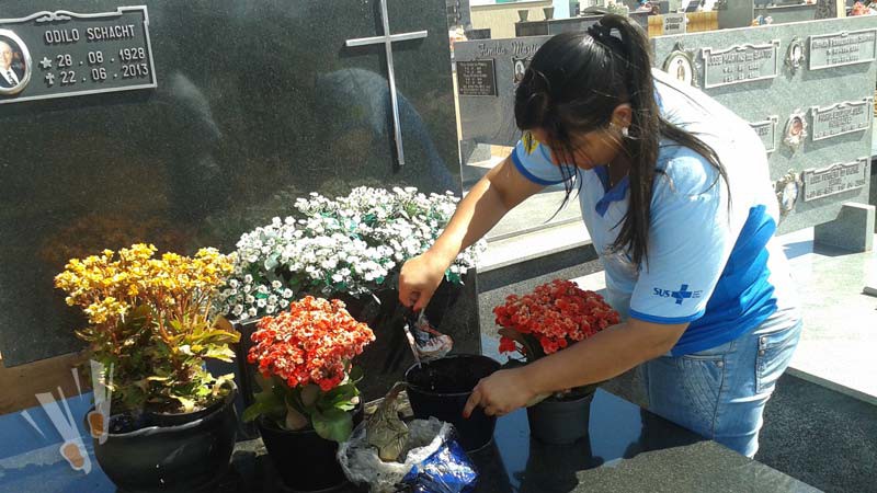 Esta semana, o alvo principal é o Cemitério de Santa Cruz. Os vasos de planta levados para enfeitar os túmulos, muitas vezes, se transformam em criadouros do mosquito Aedes Aegypti. Por isso, no dia de Finados, os visitadores sanitários vão ficar atentos. O local já vem recebendo visitadas periódicas, a cada 15 dias, mas o trabalho será reforçado.