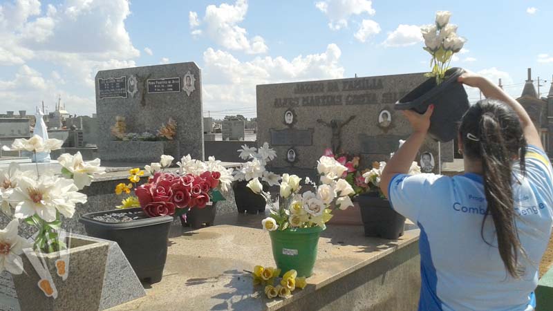 Após o dia de Finados, o Programa de Combate à Dengue realiza um trabalho de retirada de possíveis criadouros no Cemitério de Santa Cruz. Vasos de planta que tiverem qualquer possibilidade de acumular água serão descartados. Os visitadores sanitários esclarecem, no entanto, que o trabalho só terá efeito se tiver a participação de toda a comunidade.