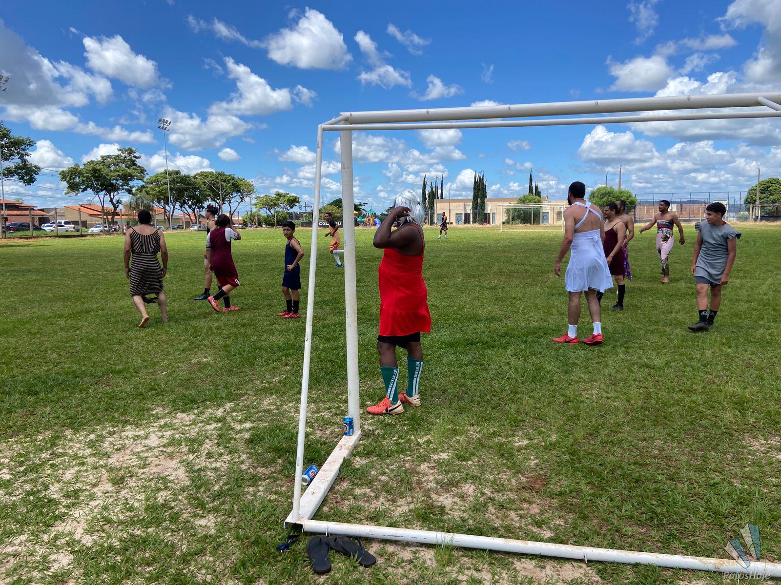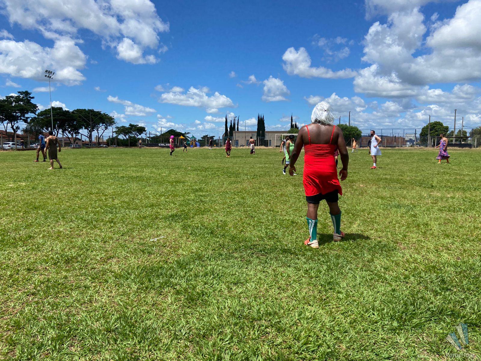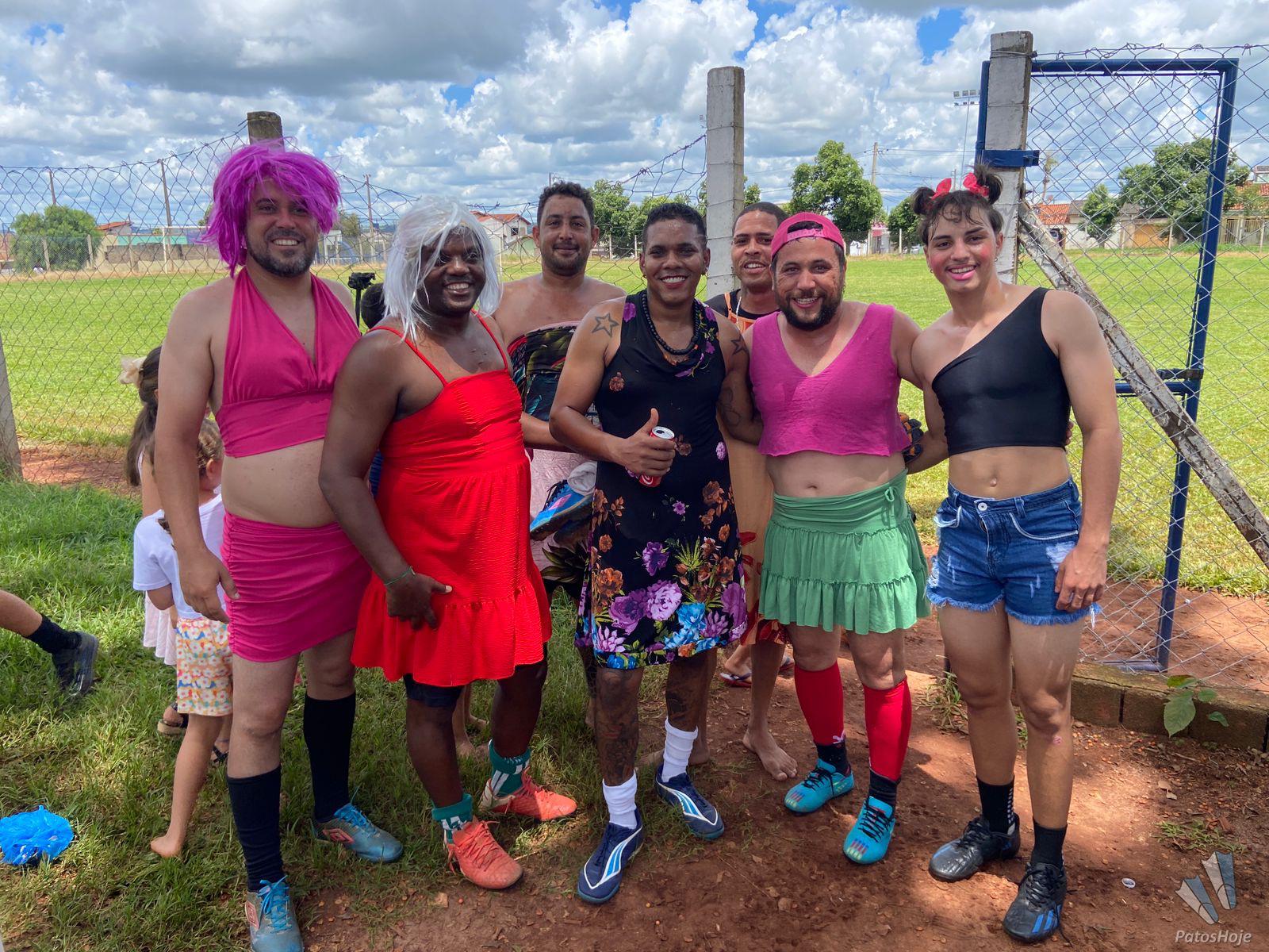 Moradores do bairro Nossa Senhora de Fátima realizaram, na manhã deste domingo (21), um futebol solidário com o objetivo de arrecadar alimentos para famílias carentes de Patos de Minas. O evento, além de beneficente, chamou a atenção pelo formato inusitado: um futebol invertido, no qual os homens entram em campo vestidos com roupas femininas. O placar final foi de 3 a 1, mas a verdade é que o resultado pouco importou.