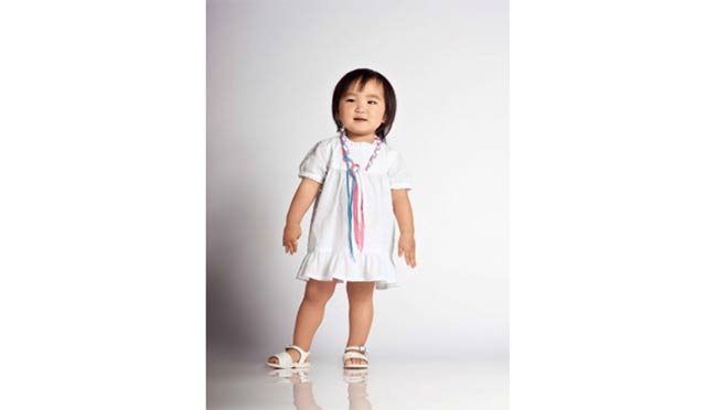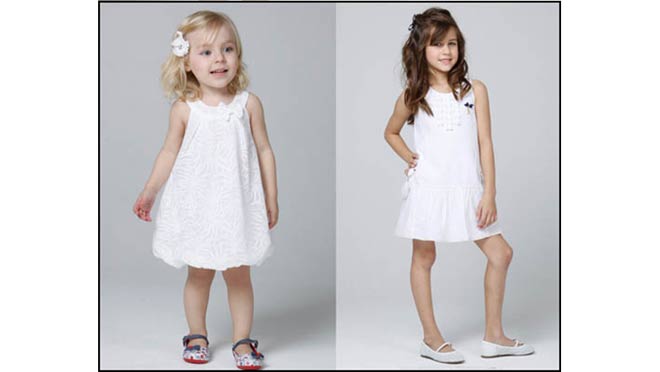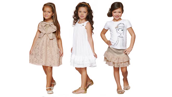 Para as meninas, vestidos na altura do joelho ou shorts e blusas. É muito comum o uso de peças com sobreposição.