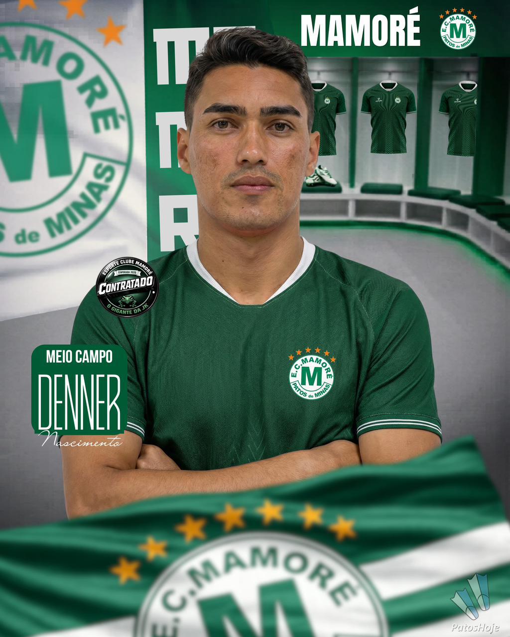 Denner Nascimento, de 31 anos – Meio-campo: Estreou no futebol no ABC-RN e acumula passagens por Coritiba, Grêmio, Avaí, Red Bull Brasil, entre outros clubes. Em Minas Gerais, o jogador atuou por Tombense, Pouso Alegre e, recentemente, pelo North. Já conquistou o Campeonato Paranaense e a Série A2 do Campeonato Paulista. O atleta vem do Concórdia-SC, onde atuou no Campeonato Catarinense deste ano.