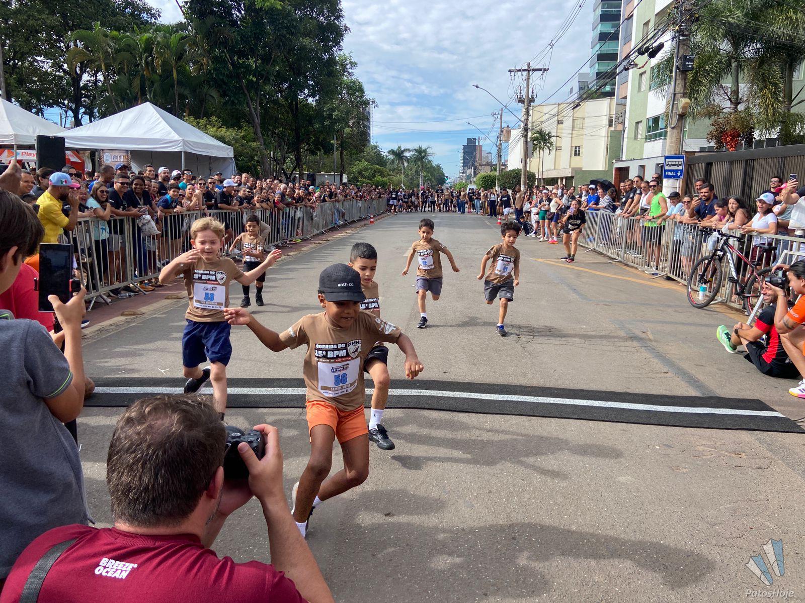 segunda edição da corrida do 15º Batalhão da Polícia Militar de Patos de Minas agitou o Centro da cidade, na manhã deste domingo (15). Ao todo, 1.200 corredores se inscreveram para a competição. E não foram apenas os adultos que participaram: os pequenos também tiveram uma corrida separada, exclusiva para eles.