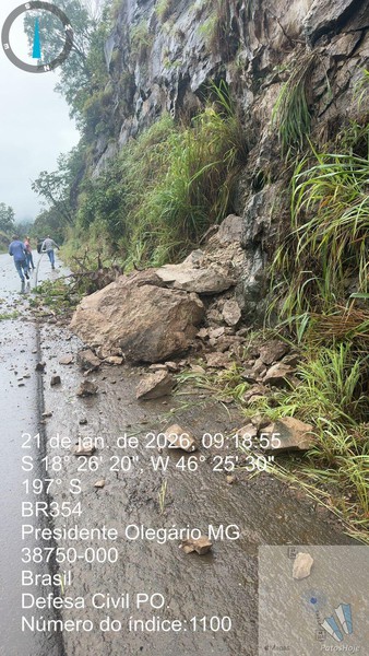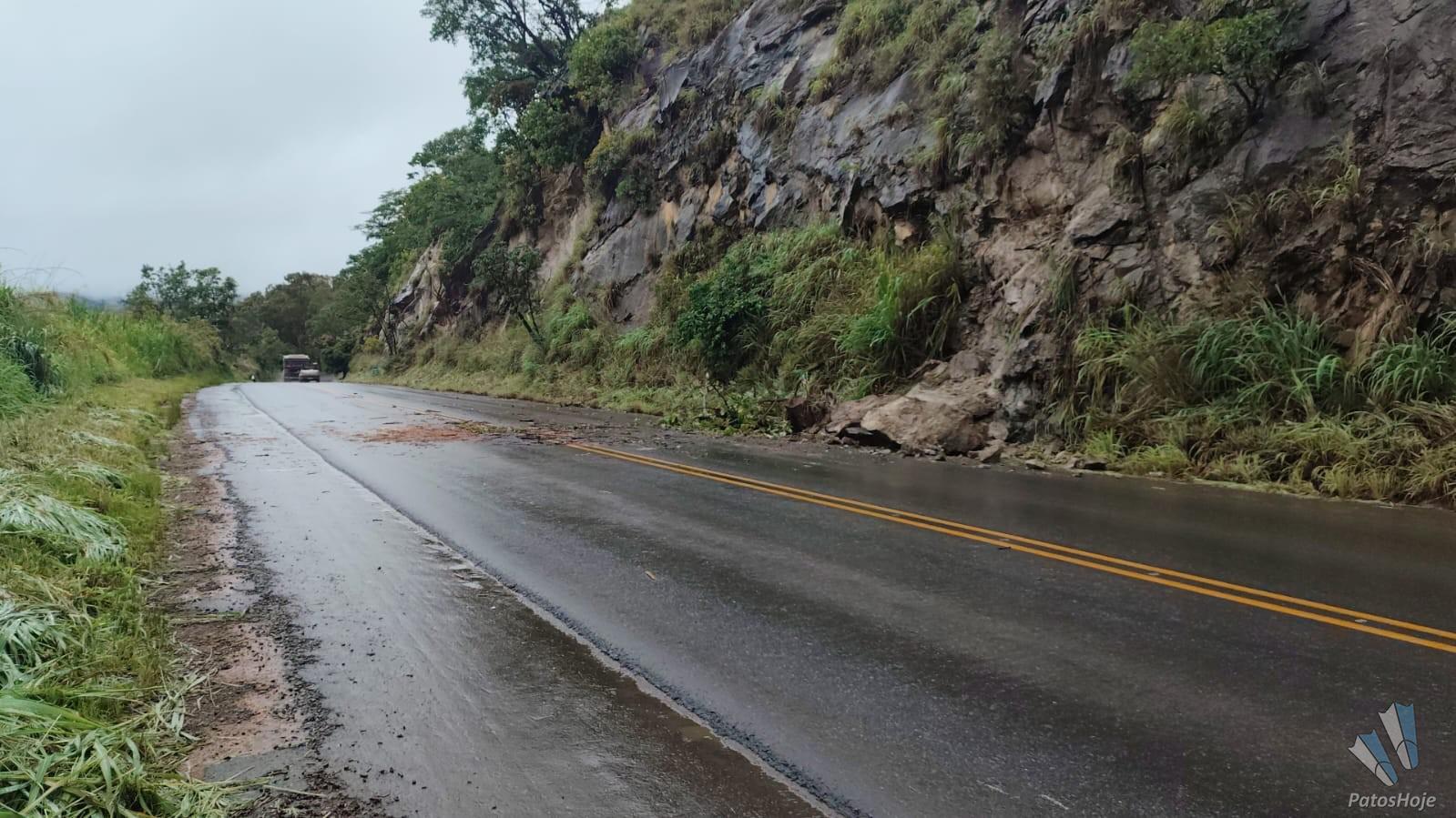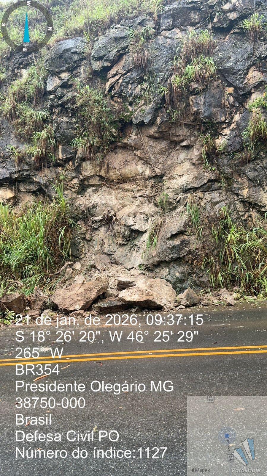 Motoristas que trafegam pela MGC-354, no trecho entre Patos de Minas e Presidente Olegário, devem redobrar a atenção. Um deslizamento de pedra calcária foi registrado no km 154 da rodovia, na manhã desta quarta-feira (21). Apesar do susto, não houve vítimas nem danos a veículos.