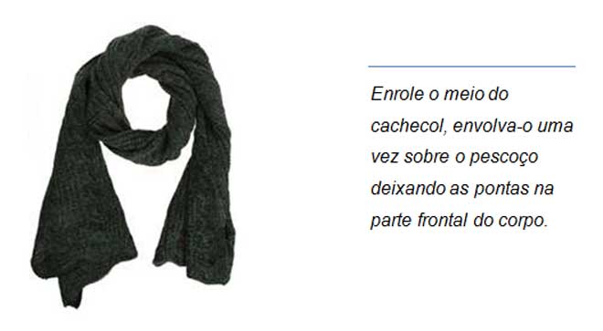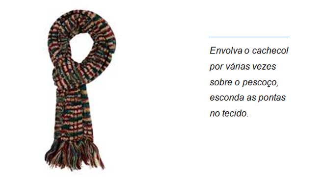 Cachecol: Costumam ser feitos de tecidos pesados com lã, tricô ou crochê. Normalmente são compridos, estreitos e dão um efeito bem volumoso. O propósito desse acessório é proteger a garganta.