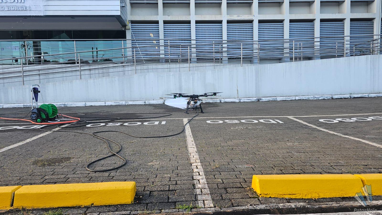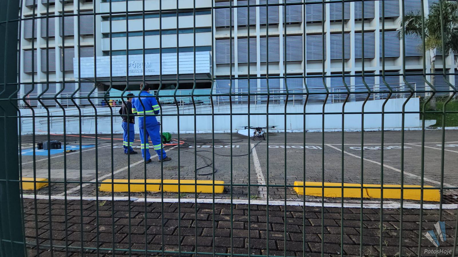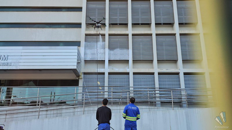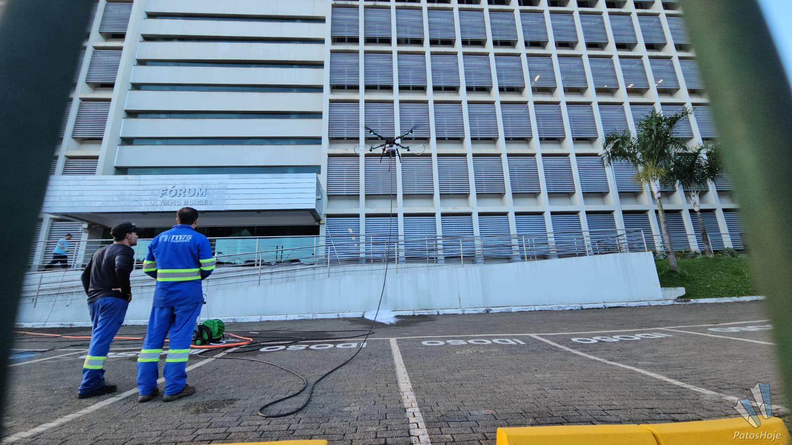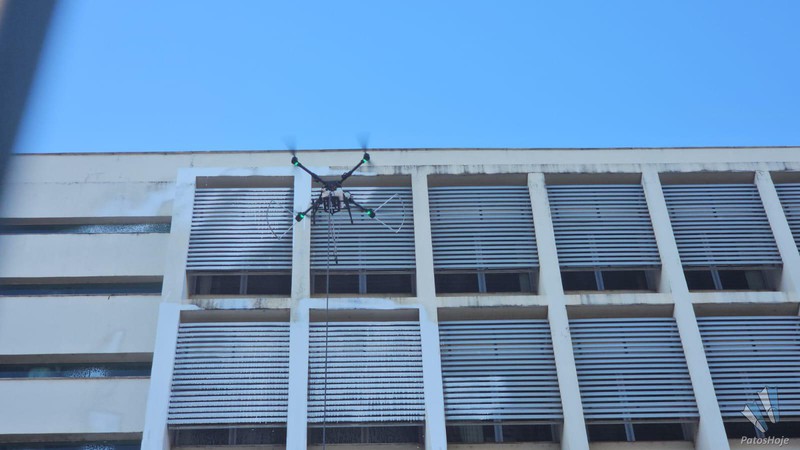 Quem passou pela rotatória da avenida Padre Almir com a avenida Angra dos Reis na tarde desse domingo (12) foi surpreendido pela tecnologia usada por uma empresa para fazer a limpeza do Fórum de Patos de Minas. Um drone de grande porte foi utilizado para lavar a fachada do prédio, em um trabalho que impressionou pela eficiência e modernidade.