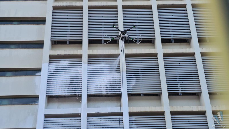A cena do drone sobrevoando o prédio e realizando a limpeza chamou a atenção de quem passava pelo local e mostra como a tecnologia vai ganhando espaço no dia-a-dia das pessoas, sendo utilizada até nas tarefas mais tradicionais.