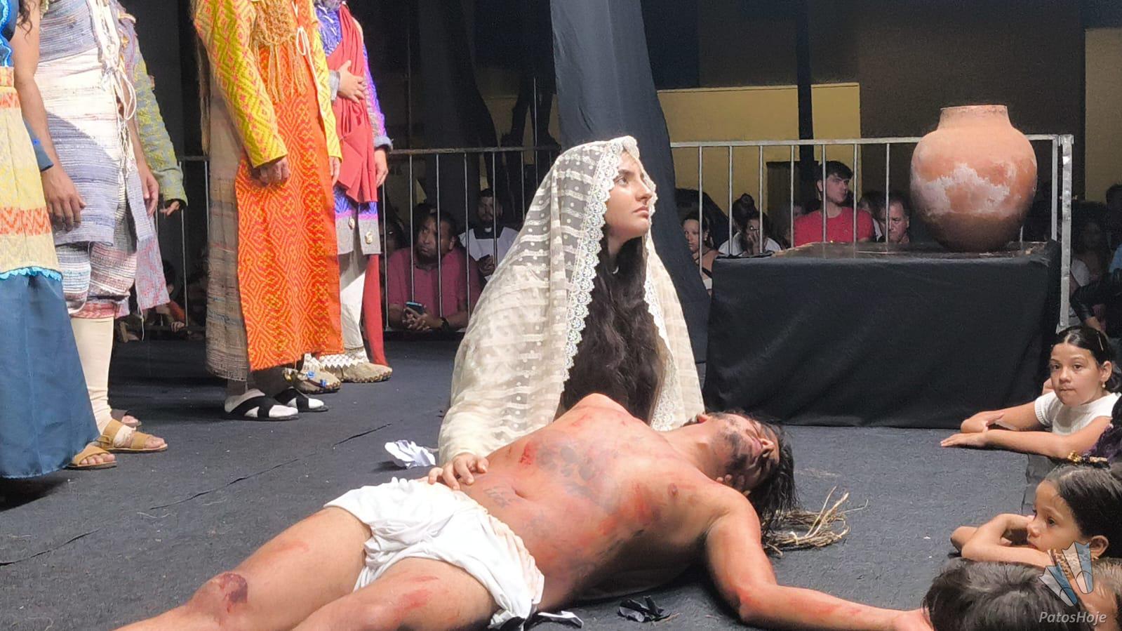 Em um palco montado na Praça Irmão Sol, a apresentação começou com a Santa Ceia. Jesus Cristo distribuiu pão e vinho para os 12 apóstolos e lembrou os fatos históricos da traição de Judas e a negação de Pedro. O julgamento de Cristo também foi um ponto alto da apresentação, condenado sem provas. Fiéis se aglomeraram em frente ao palco para não perder cada detalhe apresentado com um show de luzes e som.