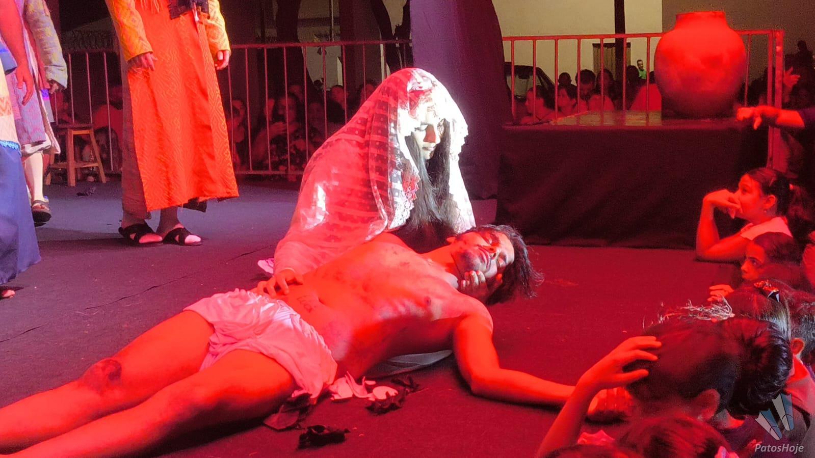Mas como sempre, os fatos mais marcantes foram o martírio sofrido por Jesus. O soldado romano, além de castigá-lo com a cruz em seus ombros, chicoteou seu corpo com violência. O açoite mostrou a maldade do homem e comoveu o público. Por fim, Jesus foi crucificado para desespero da Mãe Maria, que a seus pés chorava e clamava pela vida do filho.