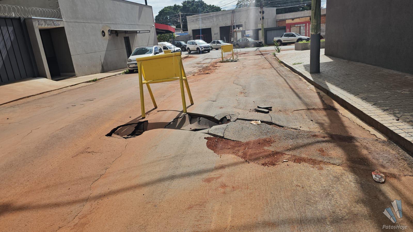Em resposta ao Patos Hoje, a Prefeitura de Patos de Minas informou que no local passam duas redes lado a lado: uma rede pluvial, de responsabilidade do município, e outra pertencente à Copasa. Para identificar a origem dos danos, será necessária a abertura do trecho afetado. Segundo a administração municipal, caso o problema seja na rede do município, o reparo será executado pela própria prefeitura. Se for constatado que os estragos têm origem na rede da Copasa, o serviço será repassado à concessionária.