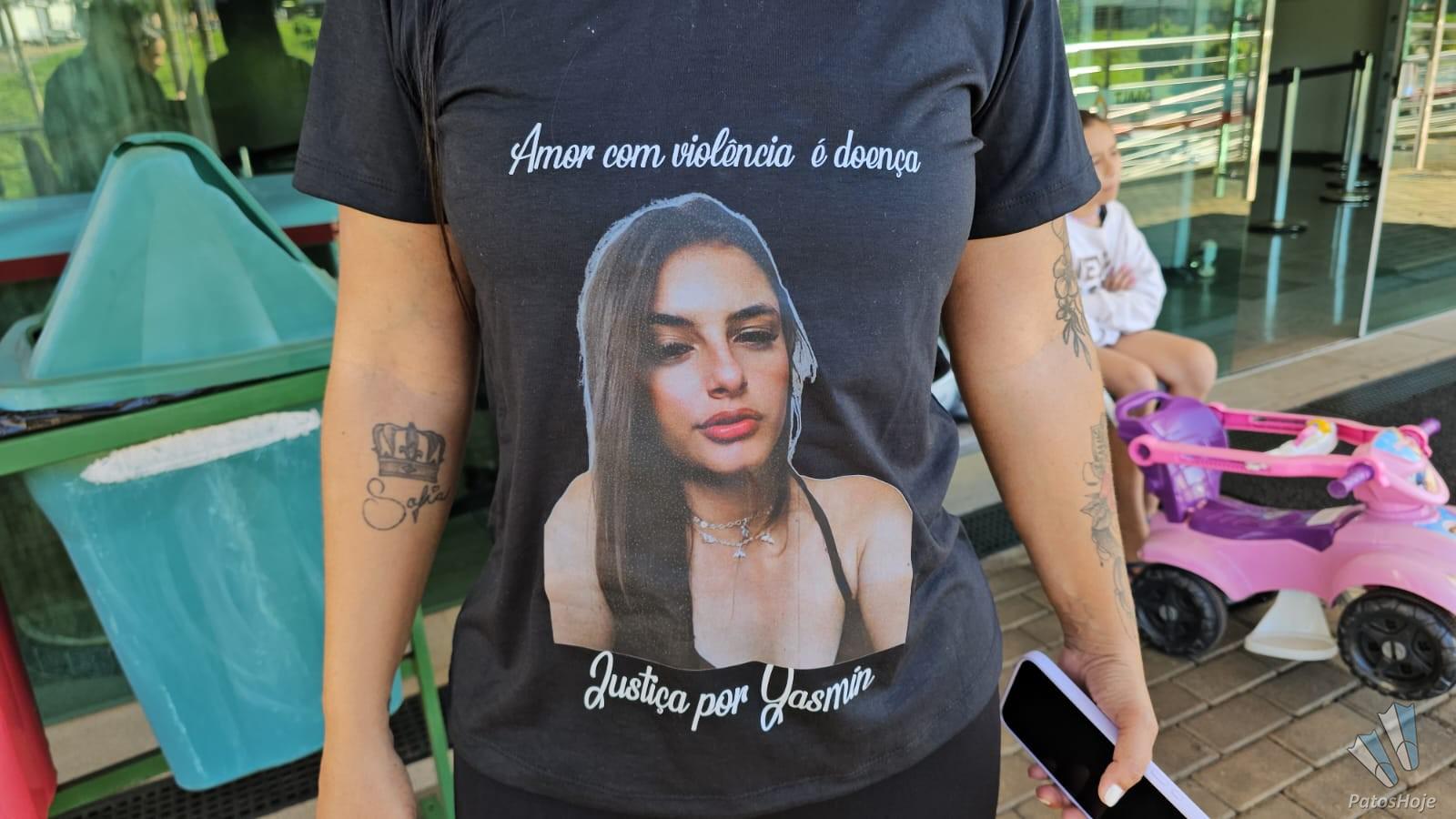 Visivelmente emocionadas, as amigas de Yasmin vestiram camisetas com a foto da jovem estampada na frente. No verso, a frase escolhida resume o sentimento de revolta e dor: "O feminicídio é o ato de desespero de quem nunca soube o que é amar. É a manifestação do ódio, da rejeição, do fracasso, onde quem grita é a covardia."