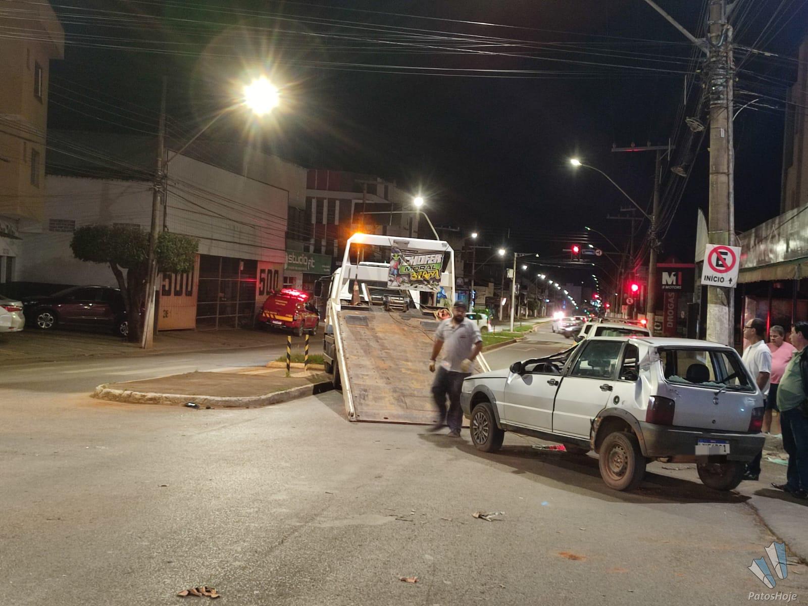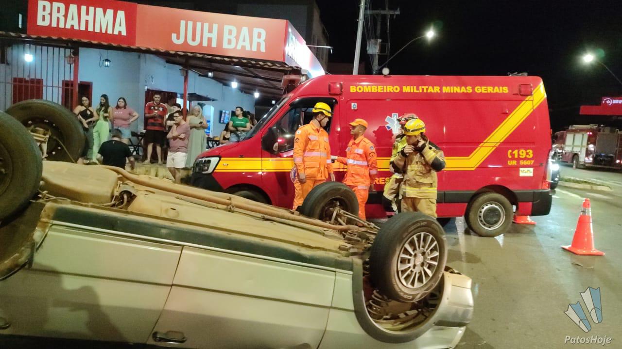 Um acidente envolvendo um Fiat/ Uno e uma motocicleta terminou com o carro capotado, na noite desta sexta-feira (27), em Patos de Minas. A batida foi registrada por volta das 22h30 no cruzamento da rua Major Gote com a rua Jaime Ramos.