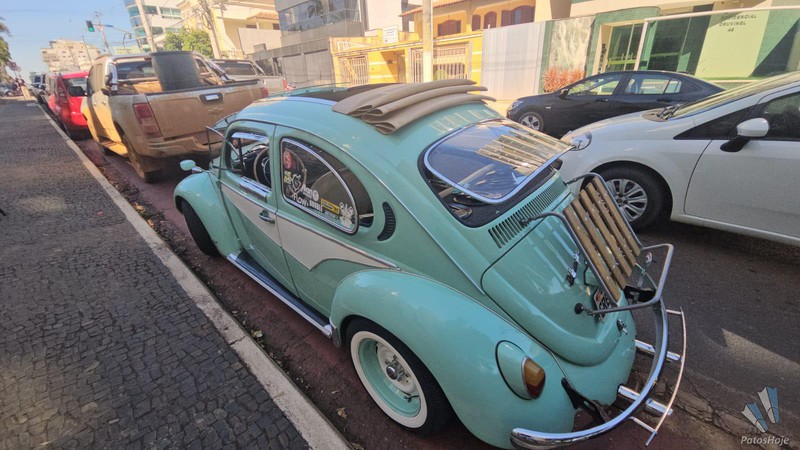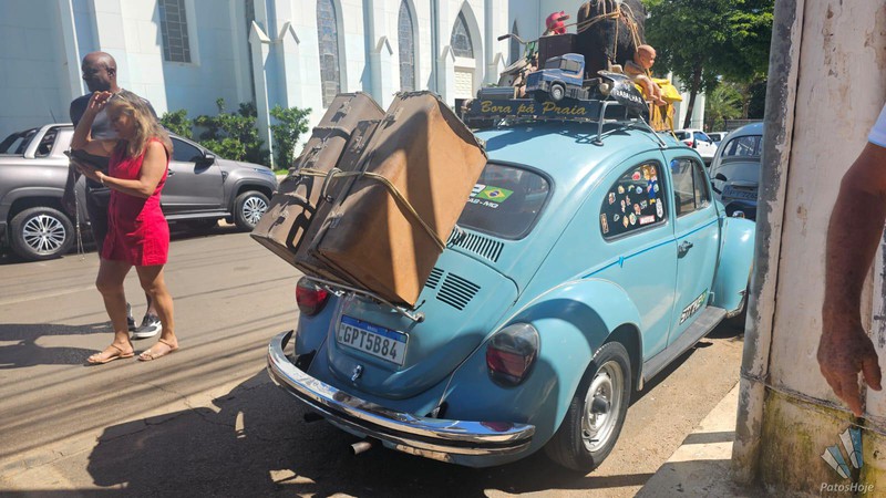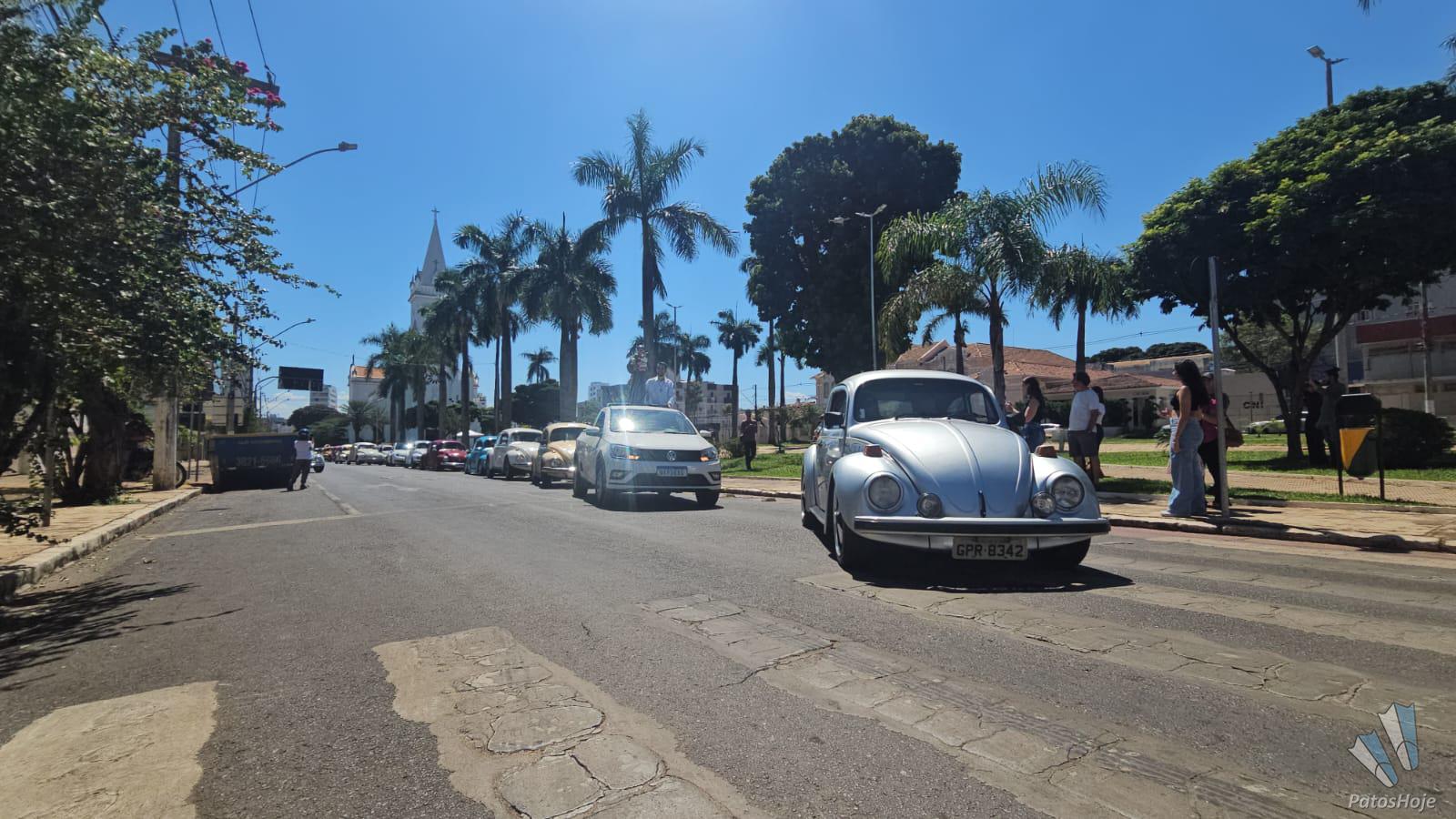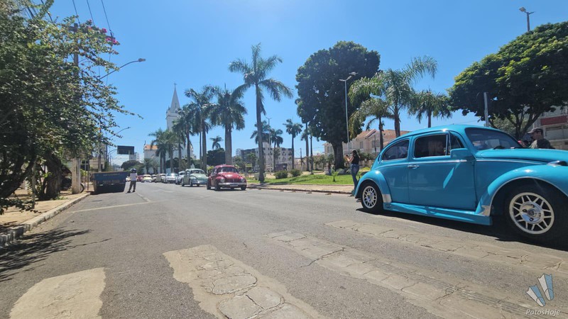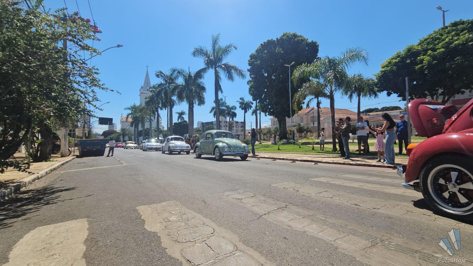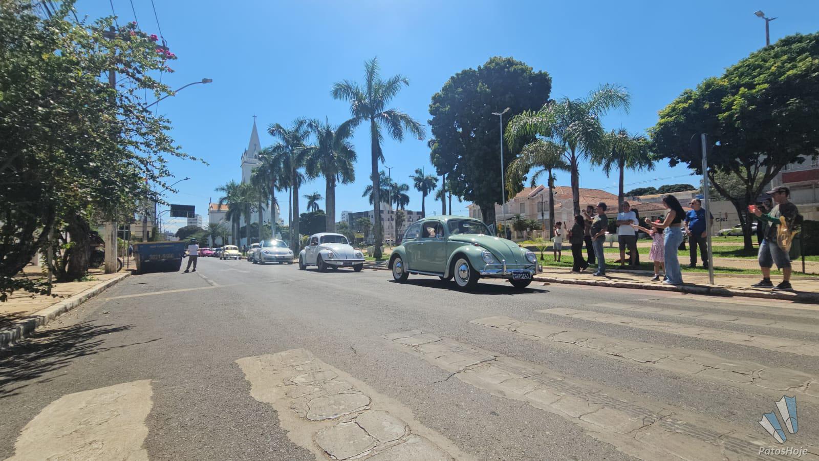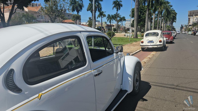 Na verdade, foi um desfile de Fuscas. Colecionadores de Patos de Minas e toda a região vieram apresentar suas máquinas. Fusca conversível, com teto solar, fusca estilizado, cor de rosa, azul e, claro, o fuscão preto eternizado na música de Almir Rogério.