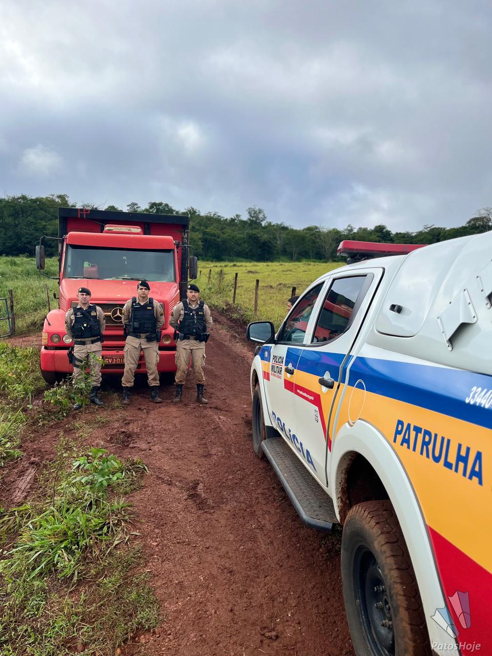 Imediatamente, os militares iniciaram diligências e passaram a levantar informações, além de analisar imagens de estradas da região. O trabalho levou à identificação de um caminhão boiadeiro Mercedes-Benz L1113, de cor azul, como possível veículo utilizado no crime.