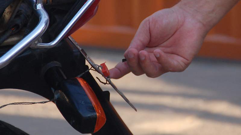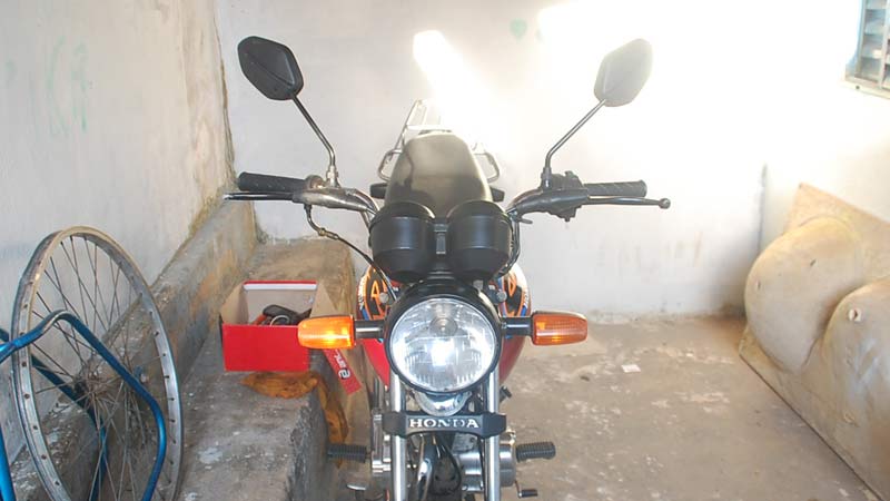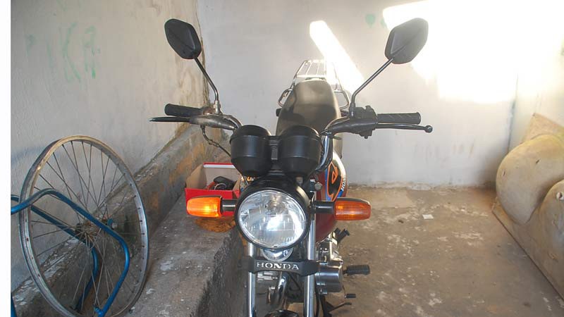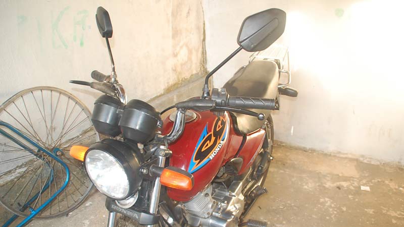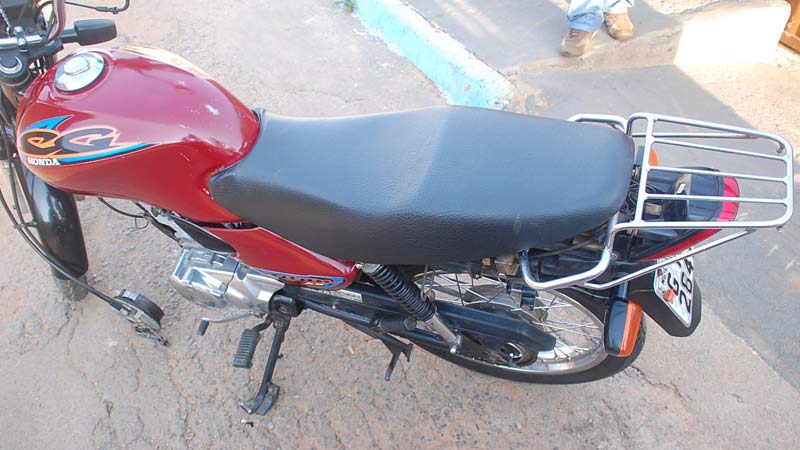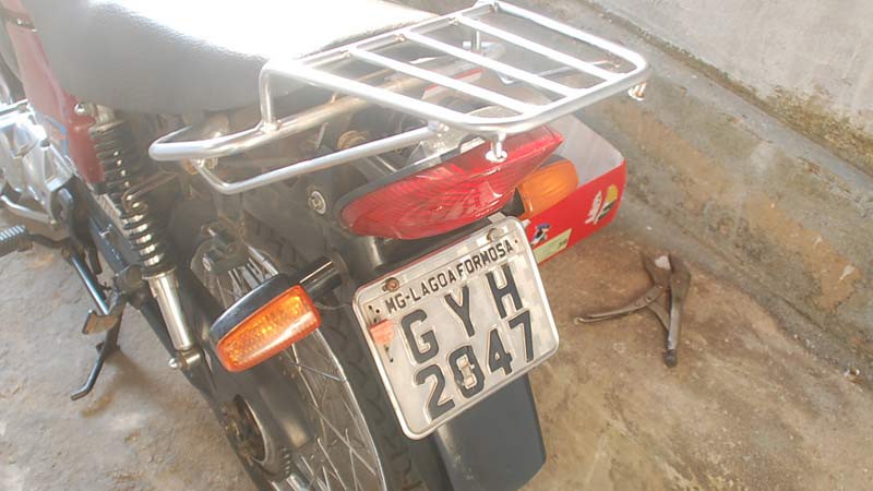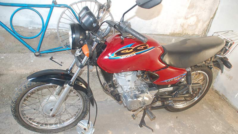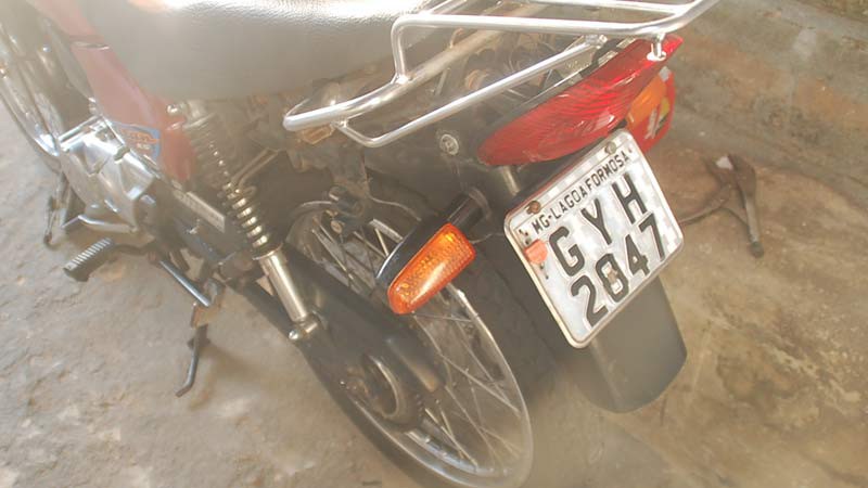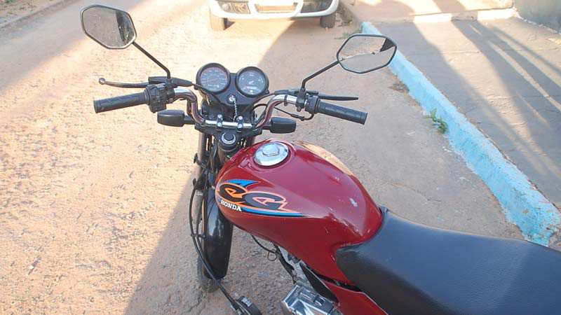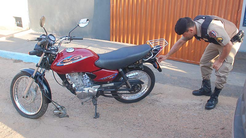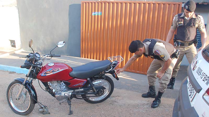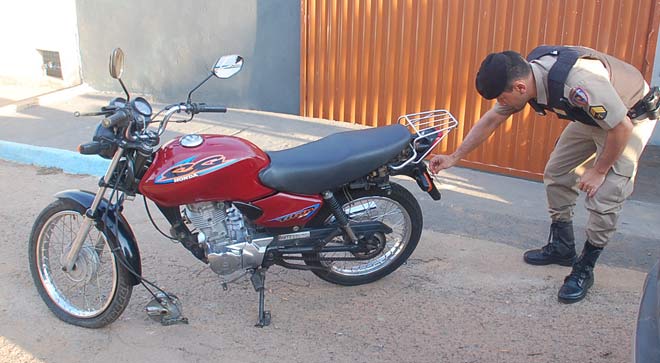 A Honda/Titan cor vermelha placa GYH 2847 estava na casa do garoto, situada na Rua Jovelino Pereira, quase esquina com a Rua Roraima. A moto estava com a placa adulterada com fita isolante. Uma chave normal estava na ignição e servia para fazer a ligação. O veículo havia sido furtado na Rua Major Gote, no último sábado (11).