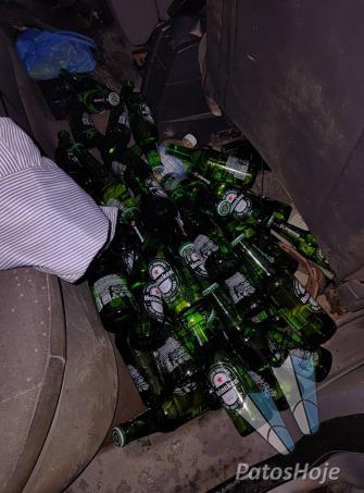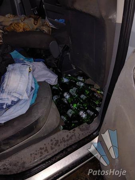 No local, os policiais encontraram o suspeito dormindo dentro do veículo. Durante a verificação no interior do automóvel, foram localizadas, no assoalho do banco traseiro, 48 garrafas intactas de cerveja Heineken de 250 ml e uma garrafa vazia da mesma marca e capacidade.