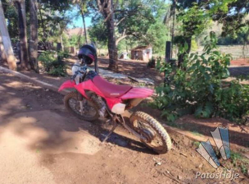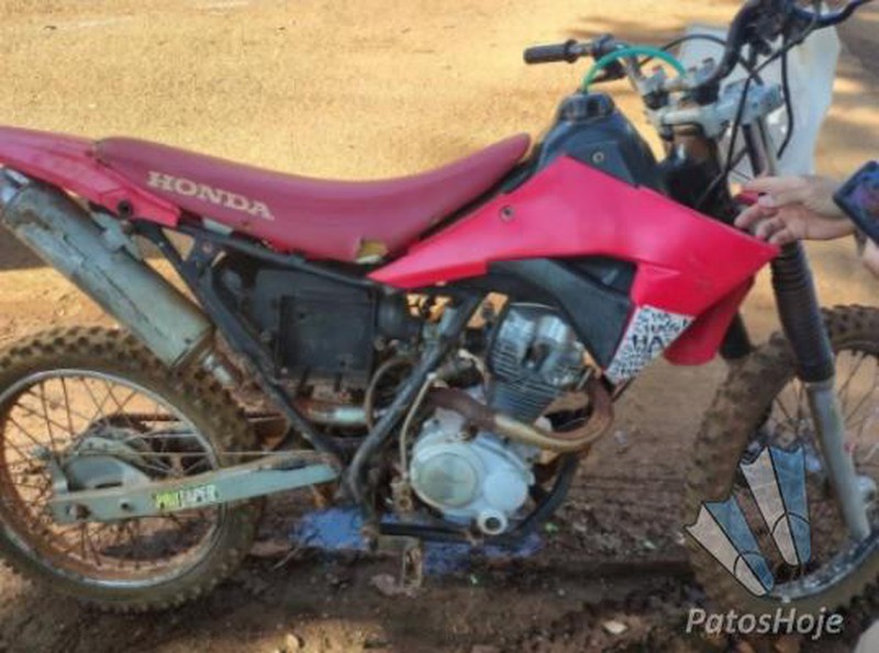 Após a colisão, os policiais verificaram que a motocicleta – uma Honda XR 200R preta – não possuía placa de identificação. A consulta pelo número do chassi revelou qual a placa do veículo e que havia sido furtado em julho de 2020. Além disso, o motor da moto continha uma numeração, registrada como “fora de circulação”. O veículo foi removido para o pátio Guincho Patense.