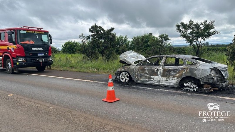 A manhã deste sábado (21) não começou bem para o motorista de um Honda Civic que trafegava pela BR-146. O veículo foi tomado pelas chamas nas proximidades do distrito de Santana de Patos, mobilizando equipes do 12º Batalhão de Bombeiros Militares de Patos de Minas.