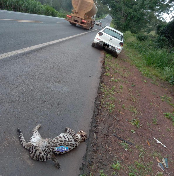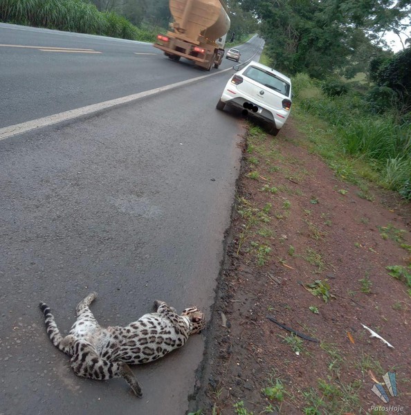 Na manhã desta sexta-feira (20), um felino silvestre semelhante a uma jaguatirica foi atropelado na BR-365. O acidente aconteceu nas proximidades da localidade rural conhecida como Rua dos Crioulos, na região de São João da Serra Negra.