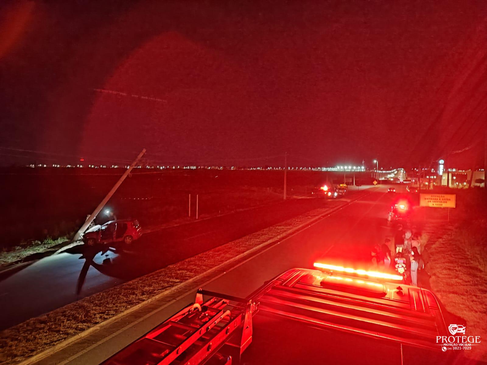 O acidente contra o poste aconteceu por volta das 19h30, no prolongamento da Av. Marabá, 280 metros após o trevo com a MGC 354, em Patos de Minas. O motorista de 19 anos ficou ferido e precisou ser socorrido. A pista também teve que ser interditada.