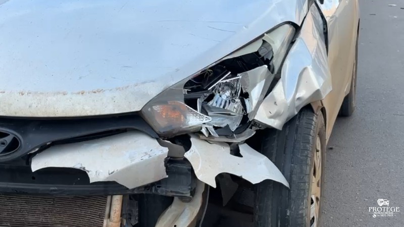 O acidente deixou o trânsito na avenida completamente travado. A frente do carro atingido ficou bastante danificada, e marcas no para-brisa mostram a violência da batida, indicando o grande susto vivido pelo motorista, que seguia para o centro da cidade para cumprir compromissos de trabalho.