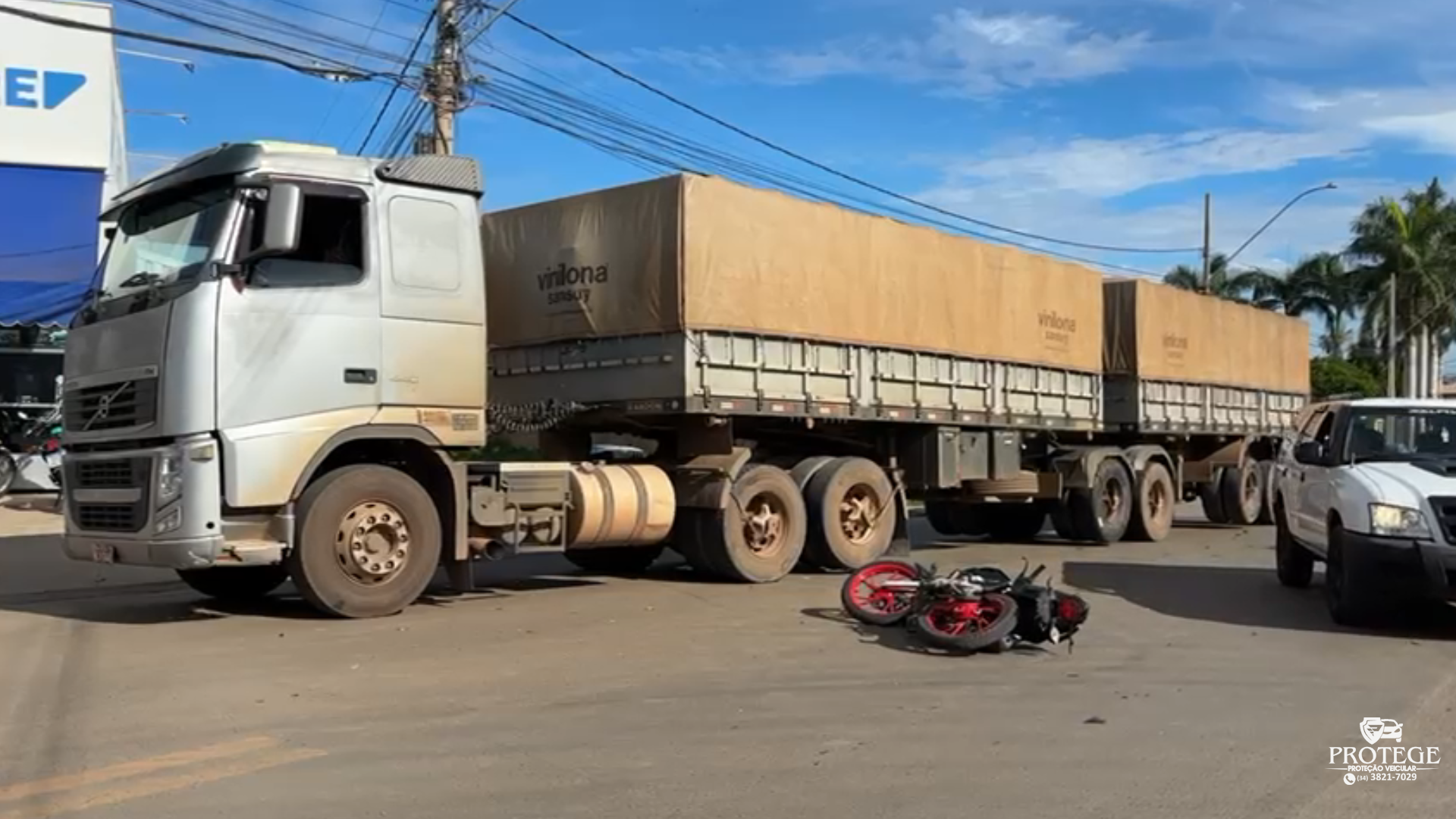 Um motociclista de 20 anos ficou ferido após se envolver em um grave acidente de trânsito na manhã desta terça-feira na Avenida Randolfo Borges Mundim, principal via de acesso ao bairro Planalto, em Patos de Minas. De acordo com testemunhas e com a Polícia Militar, o jovem estaria empinando a motocicleta, realizando o chamado “grau”, quando perdeu o controle e atingiu primeiro um carro de passeio e, na sequência, uma carreta.