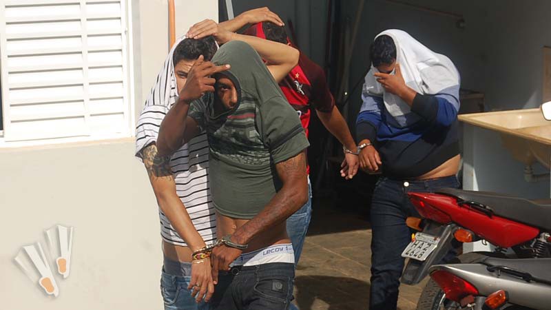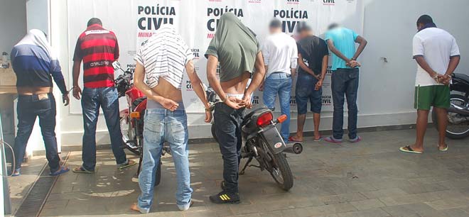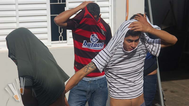 Trinta policiais em oito viaturas saíram por volta das 5h30 para cumprir 19 mandados judiciais. Foram presos Fábio Júnior Santos, 26 anos, conhecido como “Canalha”, Patrick Arimatéia Fernandes, 21 anos, Tiago de Moura Borba, 23 anos, Wesley dos Reis Lima, 20 anos, conhecido como “Leleu”, Yago Júnio Oliveira da Silva, 19 anos, e Clebson do Nascimento Oliveira, 24 anos. Outros 5 menores foram apreendidos, sendo que um deles estava em Guimarânia.