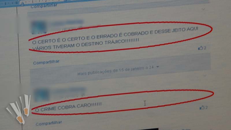 O delegado Luís Mauro Sampaio mostrou diversas páginas nas redes sociais, principalmente Facebook, em que eles aparecem ostentando a vida criminosa. As páginas traziam planejamento de crimes como homicídios, tráfico de drogas, venda de armas e motos furtadas. E a audácia dos indivíduos não para por aí. As fotos também os mostram exibindo dinheiro provavelmente produto de assalto na cidade.