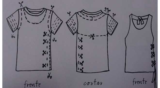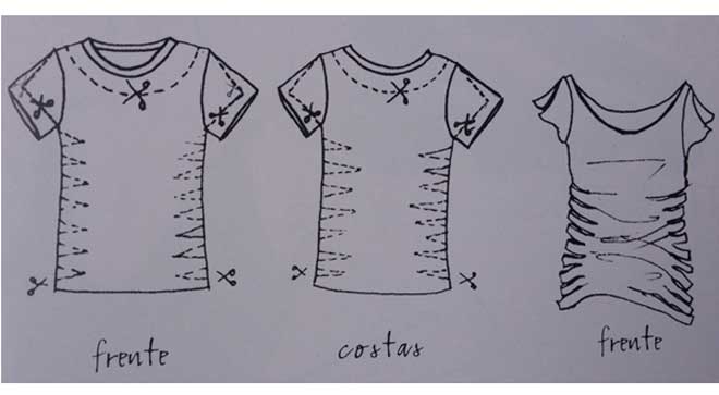 - Faça recortes duplos nas laterais da camiseta.
