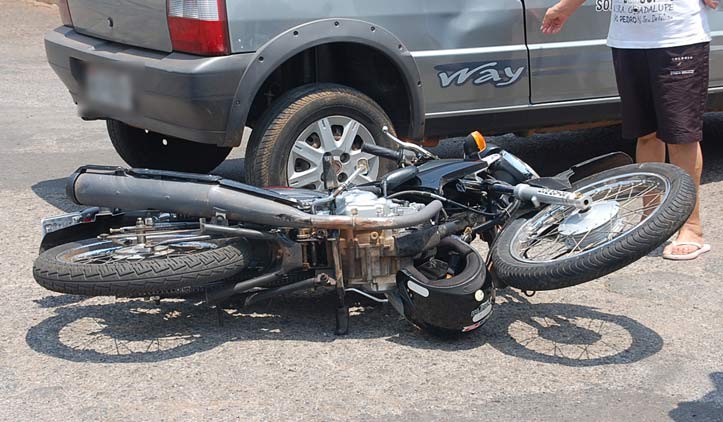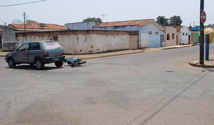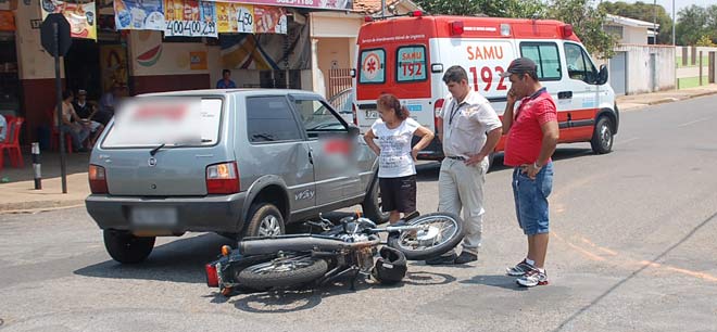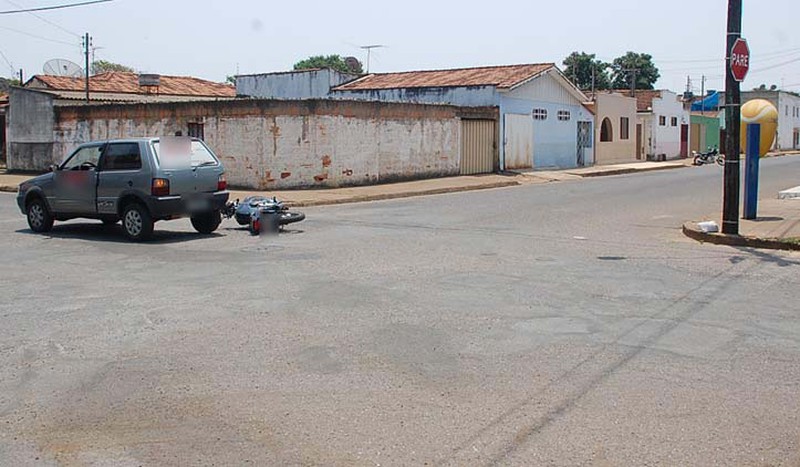Um jovem teve que ser levado para o Hospital Regional neste sábado (18) após um acidente no Bairro Brasil. O motorista do carro não percebeu a placa de parada obrigatória e acabou sendo atingido pelo motociclista. Moradores disseram que os acidentes nesta esquina são frequentes.