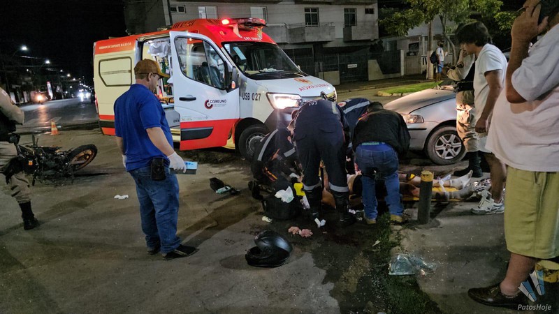Com a força da batida, o motociclista foi arremessado ao solo e sofreu ferimentos graves. Ele apresentava agitação e intensa hemorragia, o que exigiu um trabalho minucioso da equipe do Samu durante o socorro.