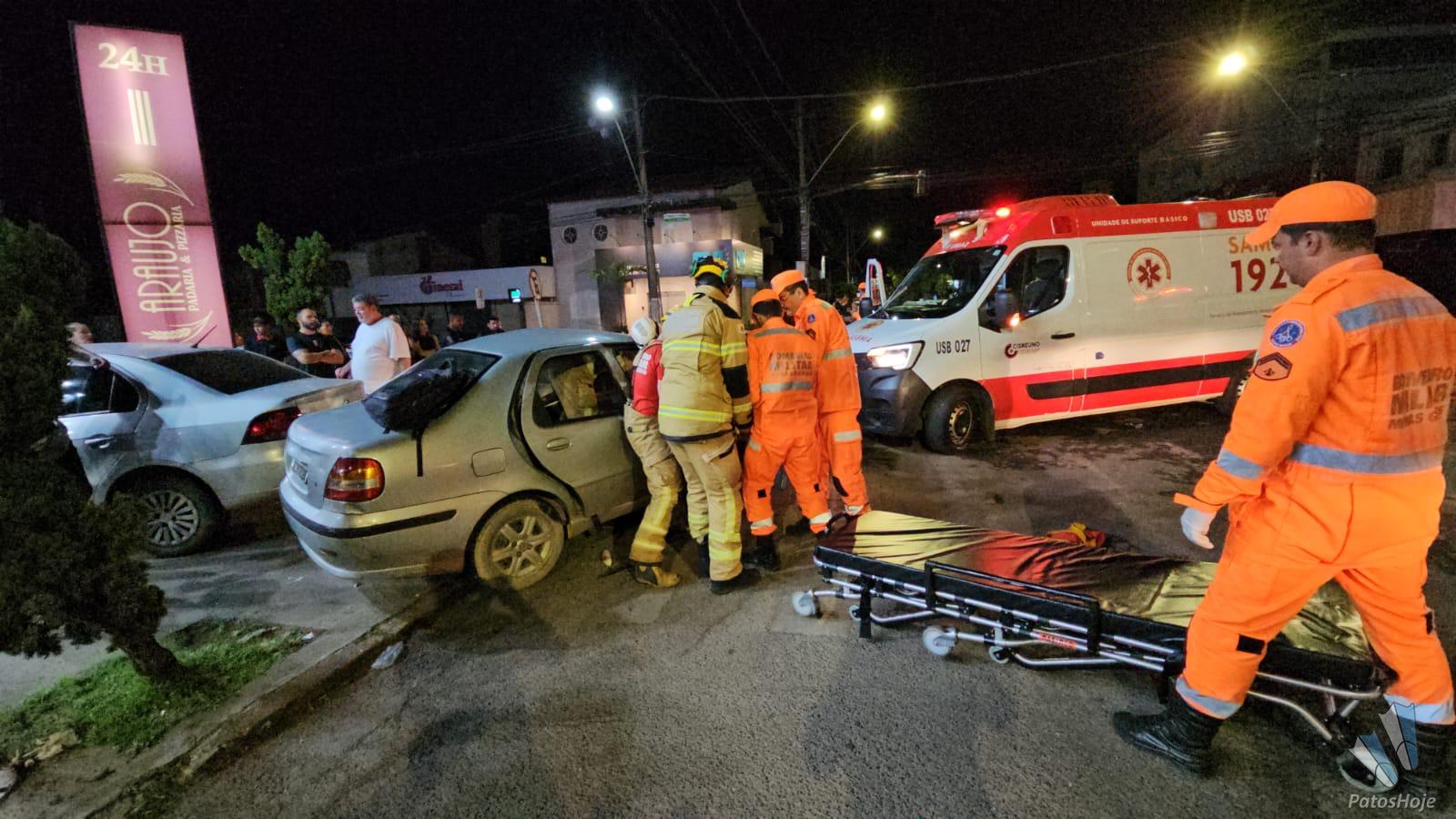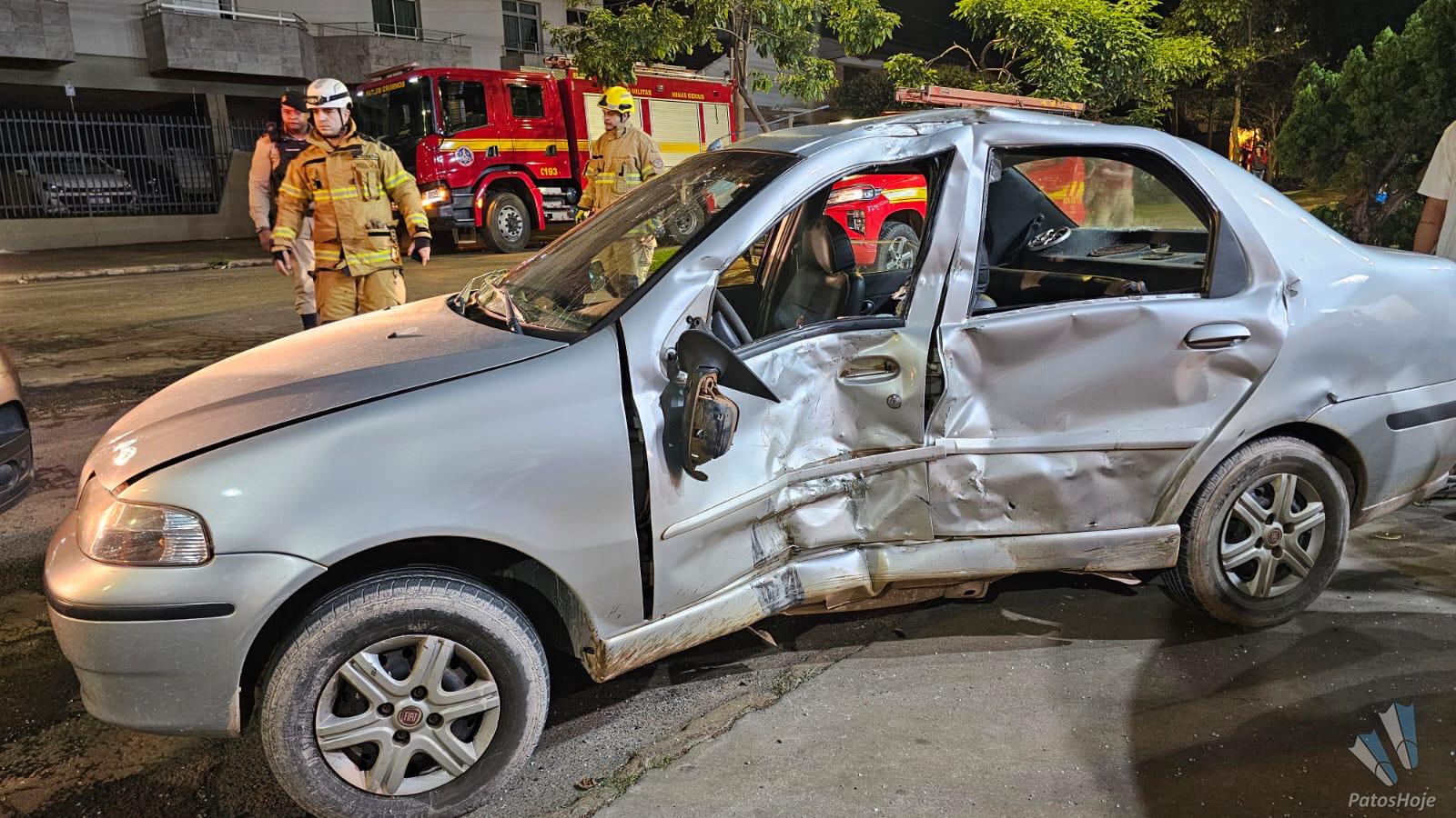 O motorista do carro, por sua vez, ficou retido no interior do veículo, que teve a lateral severamente danificada. Os bombeiros realizaram o desencarceramento para retirá-lo em segurança. O condutor estava consciente e apresentava apenas um sangramento na face.
