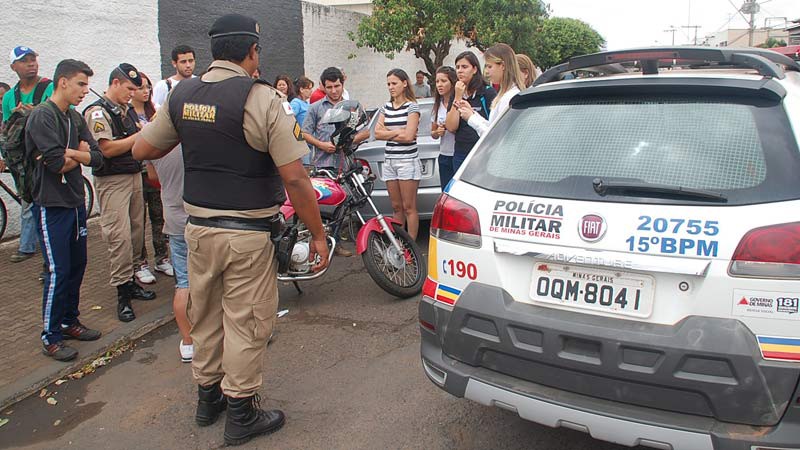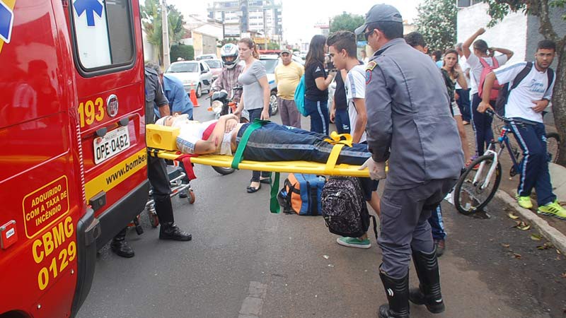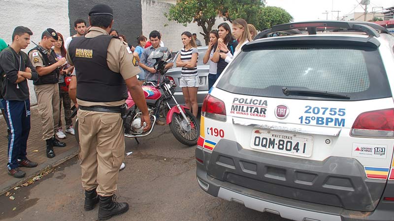 Uma estudante da Escola Estadual Professor Zama Maciel foi atropelada e arrastada nesta quarta-feira (22) em Patos de Minas. Após o acidente, o motociclista fugiu do local sem prestar socorro. Testemunhas anotaram a placa da moto e repassaram para os policiais que efetuaram a apreensão do condutor.