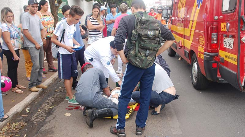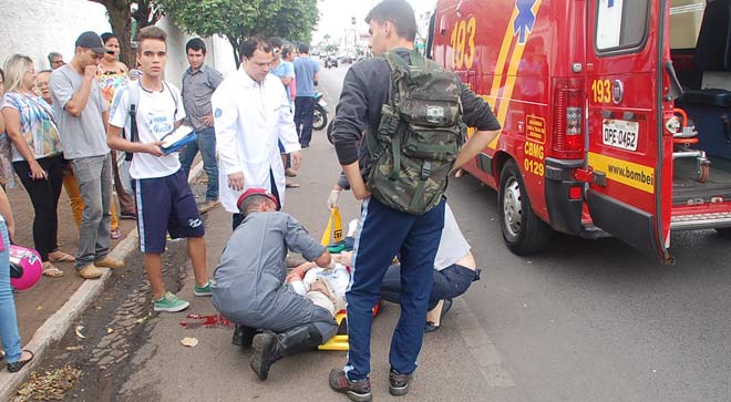 Uma grande quantidade de sangue ficou no local onde ela ficou caída. Uma unidade do Corpo de Bombeiros esteve no local para prestar os primeiros socorros à vítima. Ela foi conduzida até o Hospital Regional com diversos ferimentos.