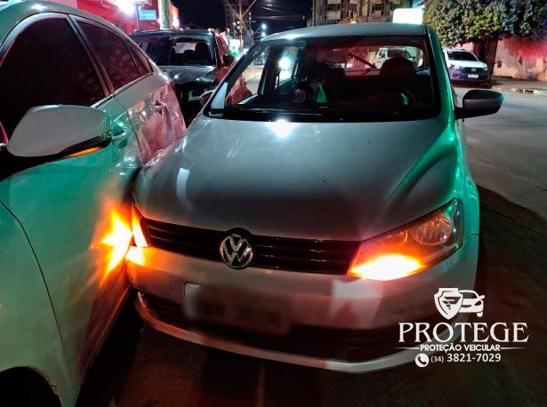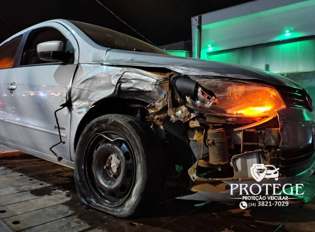 Policiais militares localizaram o veículo já acidentado na Rua Doutor Marcolino, no Centro da cidade. O Gol estava atravessado na pista e havia colidido com um Jeep/Compass e um Hyundai/HB20S, ambos estacionados regularmente. Em seguida, o condutor foi encontrado na Avenida Getúlio Vargas, já fora do carro.