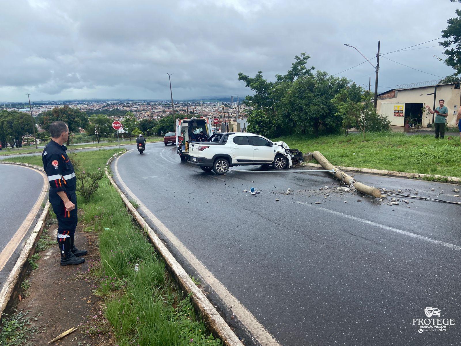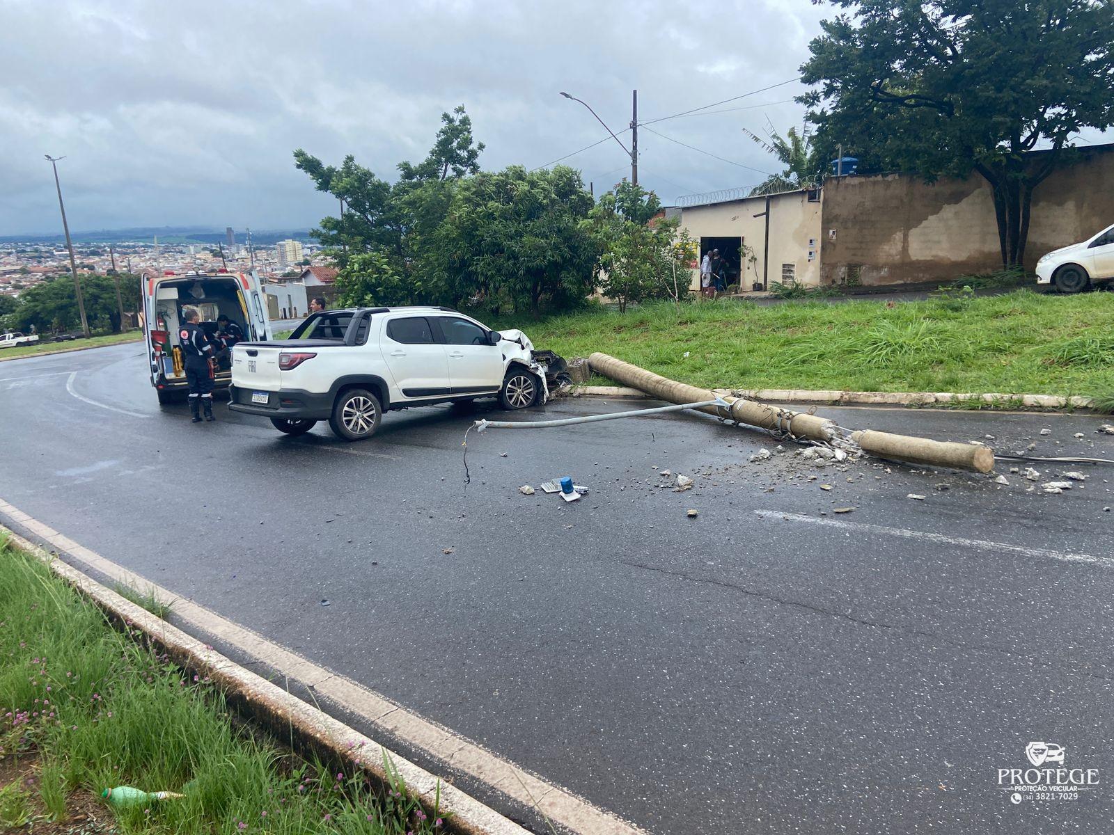 O condutor de uma Fiat/Strada acertou em cheio um poste na avenida das Paineiras, no bairro Alto da Colina, em Patos de Minas, na manhã desta sexta-feira (23). O poste ficou destruído. Felizmente o motorista teve apenas ferimentos leves e dispensou atendimento médico.