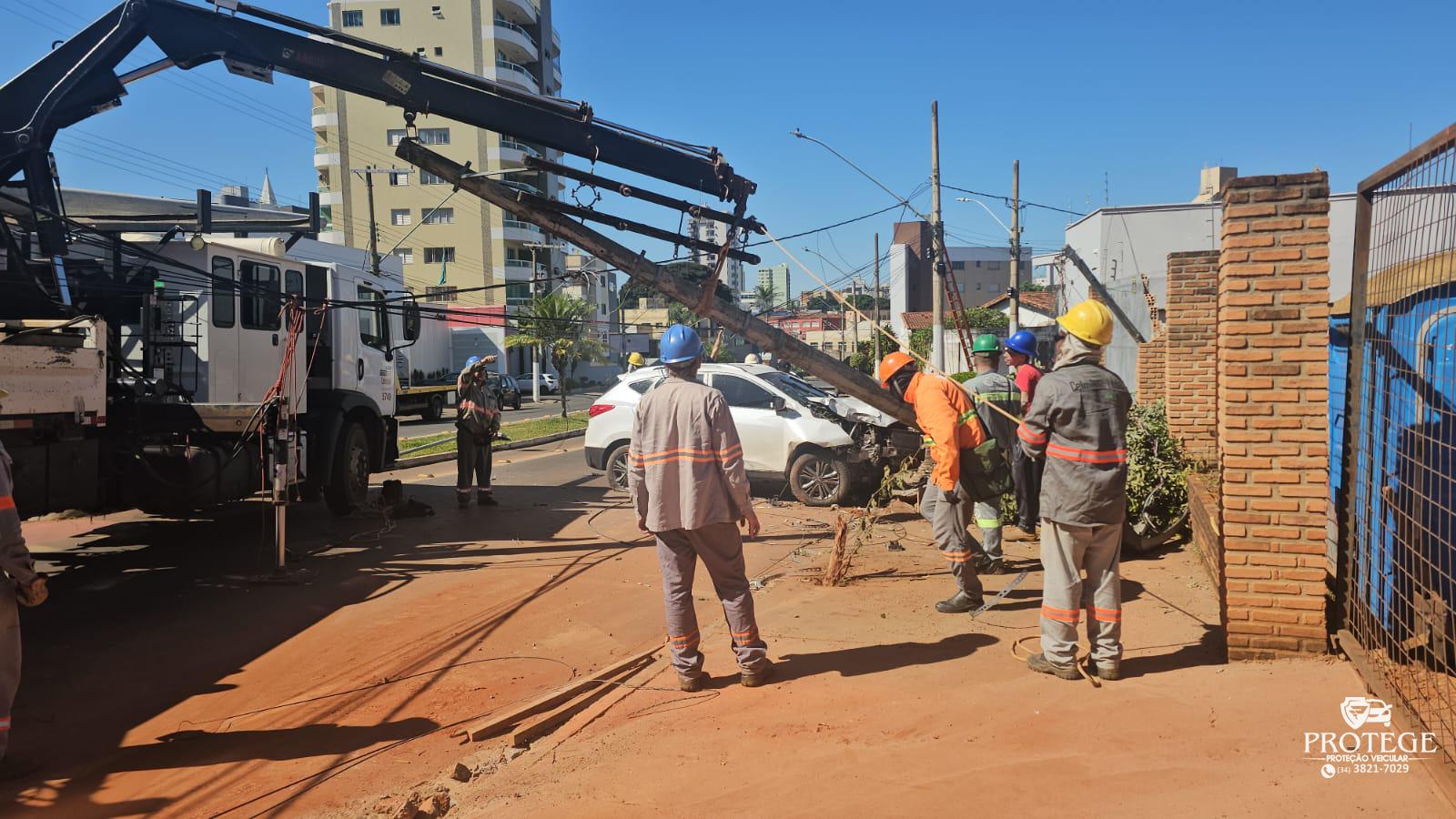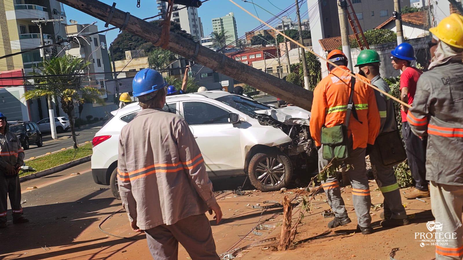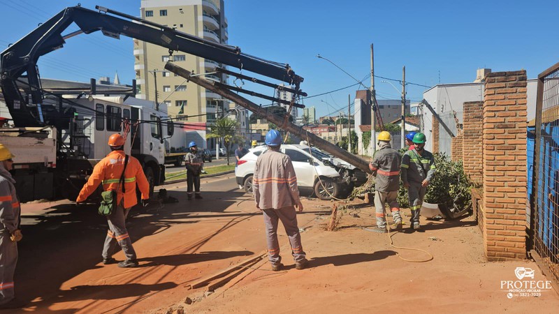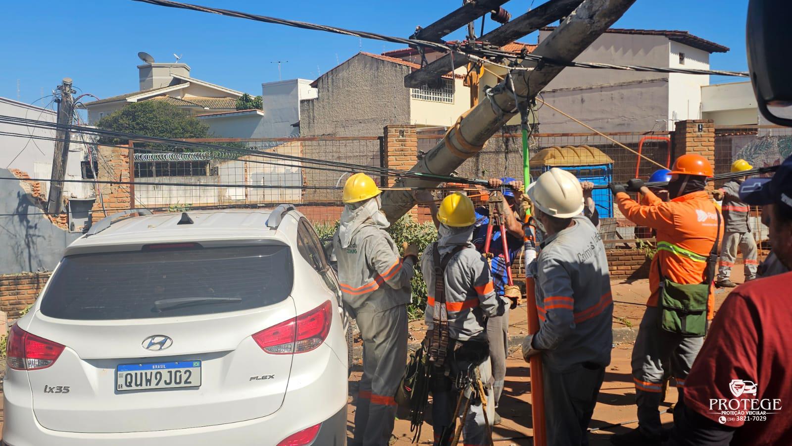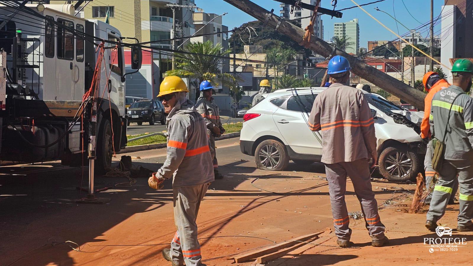 Moradores das imediações da avenida Padre Almir amanheceram sem energia elétrica na manhã deste domingo (19). É que um poste de iluminação pública foi destruído por um veículo de passeio e obrigou funcionários da Cemig a atuarem.