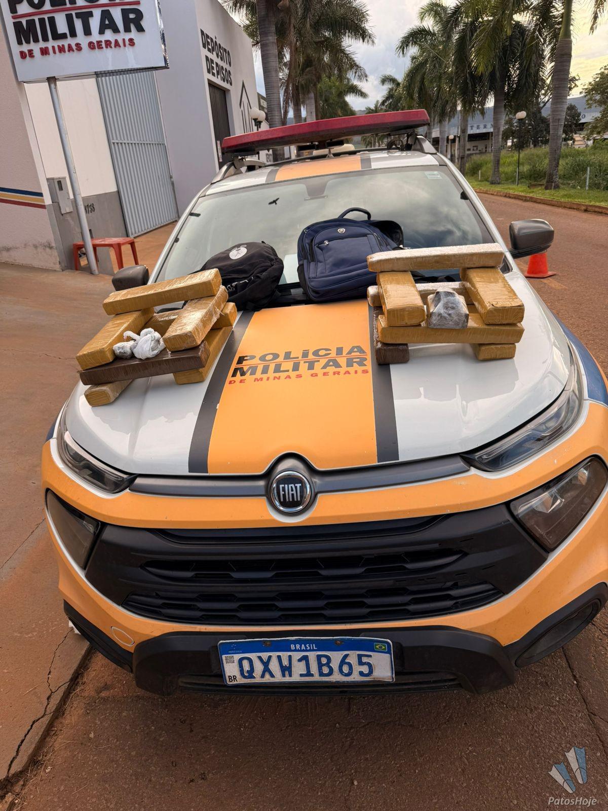 Durante as buscas no interior do veículo, os militares localizaram duas mochilas contendo 15 tabletes de maconha, sendo 14 inteiros e um fracionado. Aos policiais, os autores relataram que o destino final da droga seria a cidade de Paracatu.