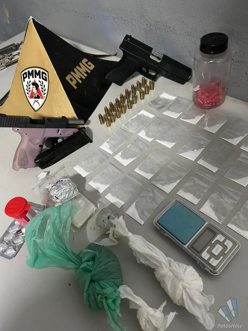 A Polícia Militar de Patos de Minas realizou, nesta terça-feira (31), o cumprimento de um mandado de busca e apreensão que resultou na desarticulação de um ponto de tráfico de drogas no bairro Jardim Quebec. A ação foi motivada por investigações que apontavam que um adolescente de 15 anos estaria utilizando as redes sociais para exibir armas de fogo e drogas, em uma clara tentativa de "ostentação".